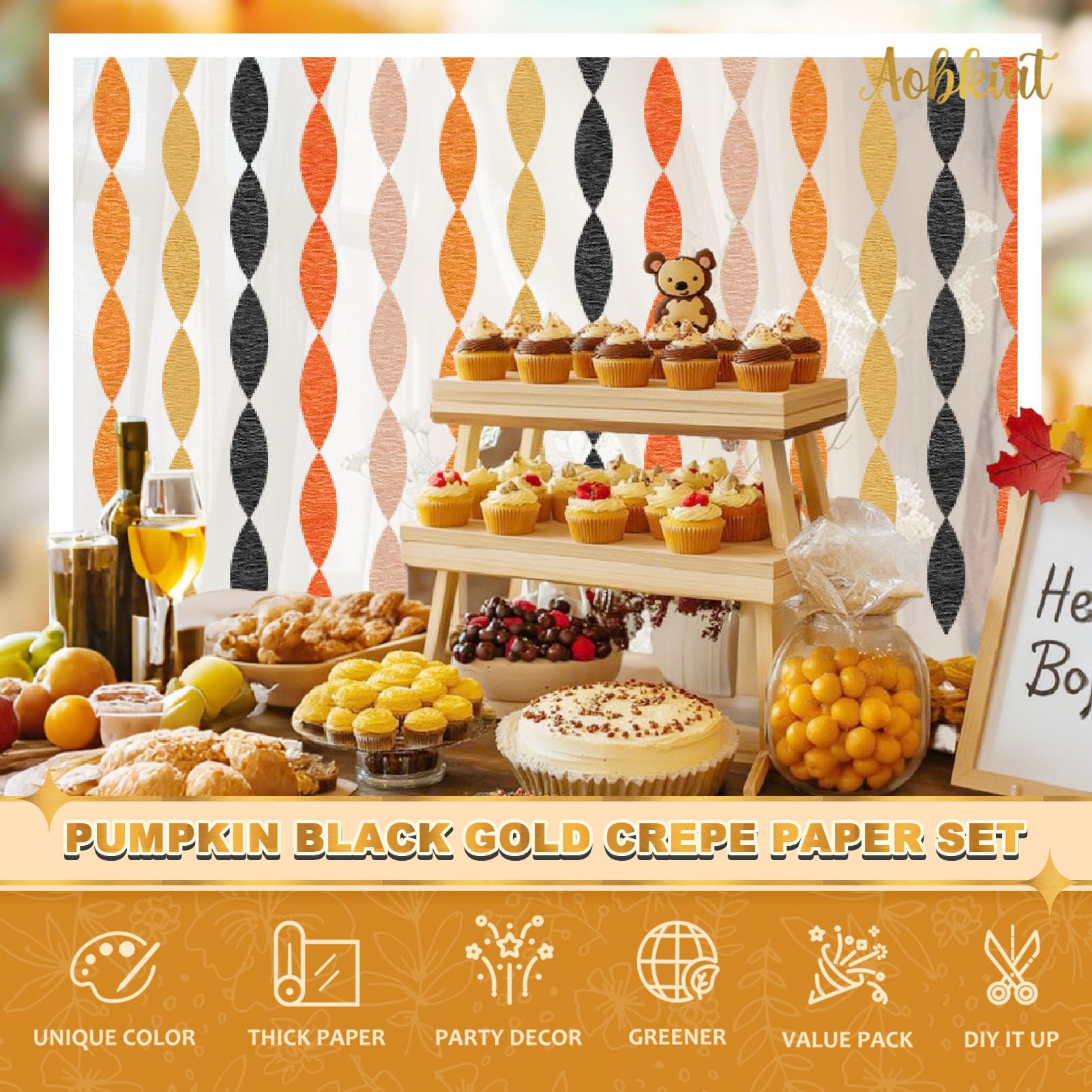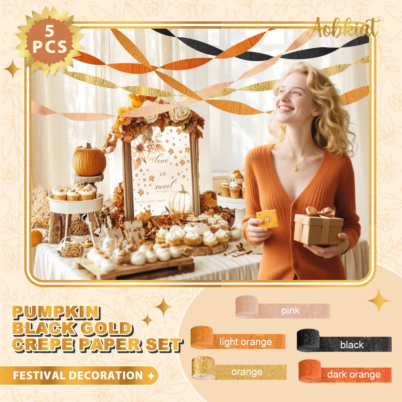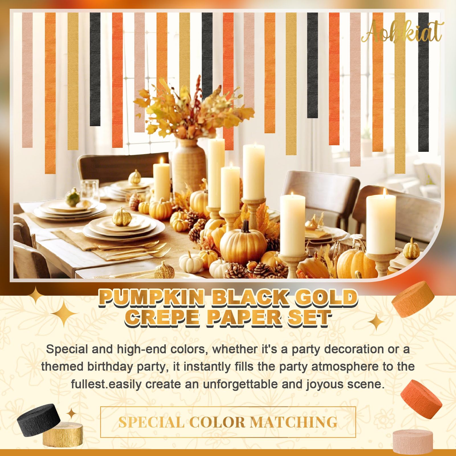 ATTRACTIVE ORANGE - Our crepe paper comes in pumpkin orange, orange,light pink, gold, and black, and you can match different colors of paper together for a better display