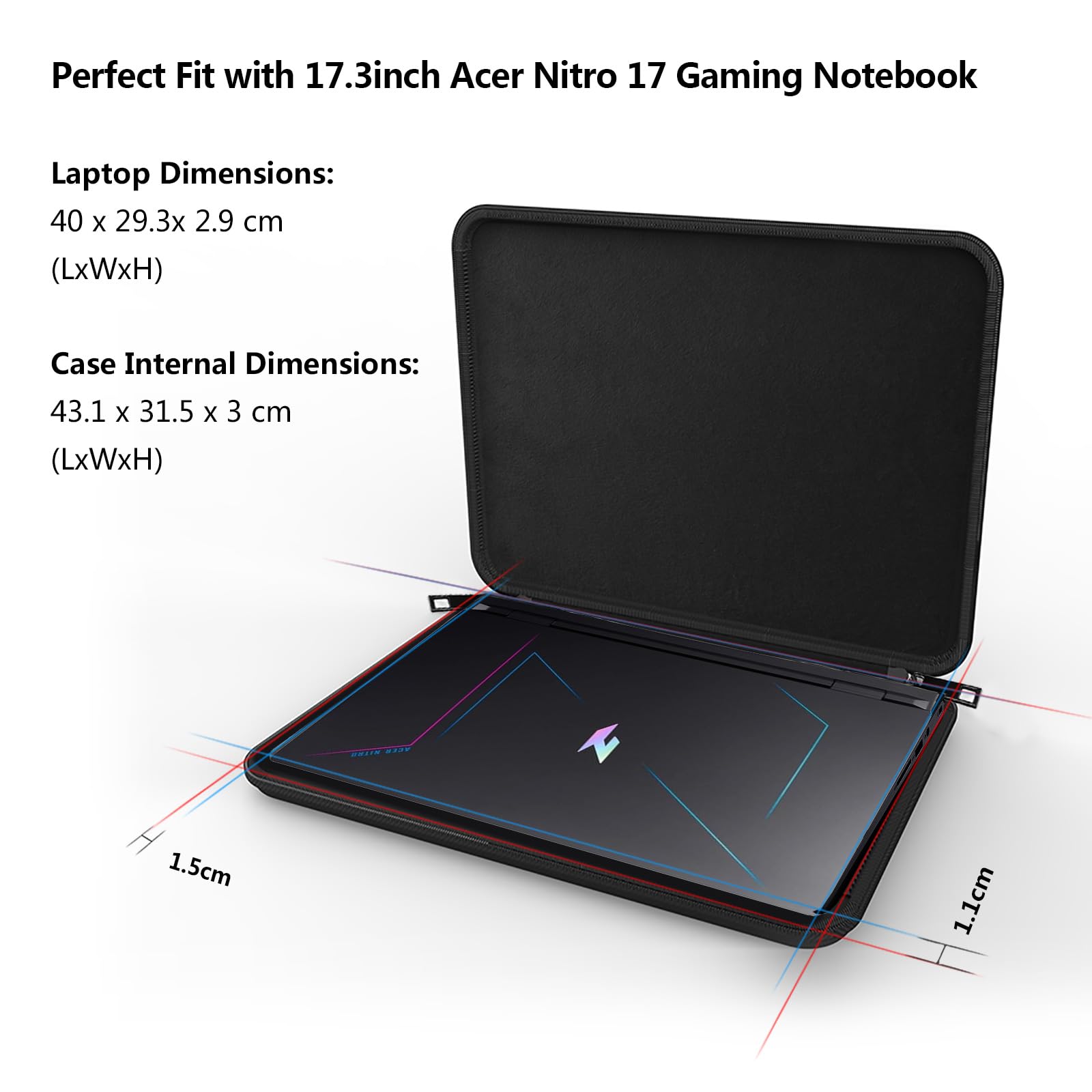 【Custom Made for 17.3 inch Acer laptop】Designed to perfectly fit and protect corners for the Acer Nitro 17 Gaming Laptop Case, Acer Nitro 17 Laptop Sleeve, 17.3inch Acer Nitro 17 Hard Shell Case , Acer Nitro 17 Gaming Laptop Bag.