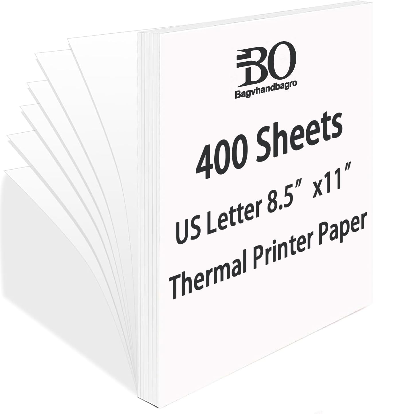 Value Pack: The Set includes 400 sheets of Single-Sheet thermal printer paper, each measuring 8.5 x 11 inches (216 x 279mm) US letter size, 400-Sheet of value pack allows you to print without worry!