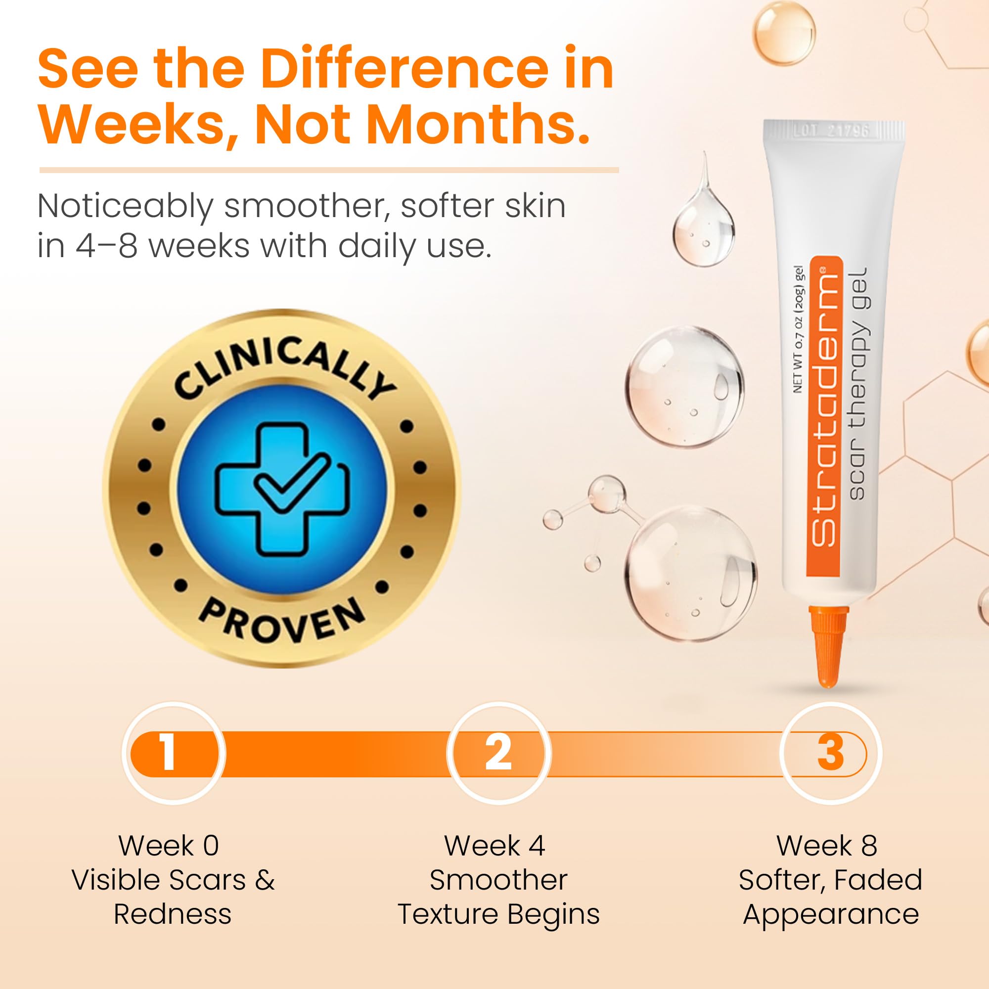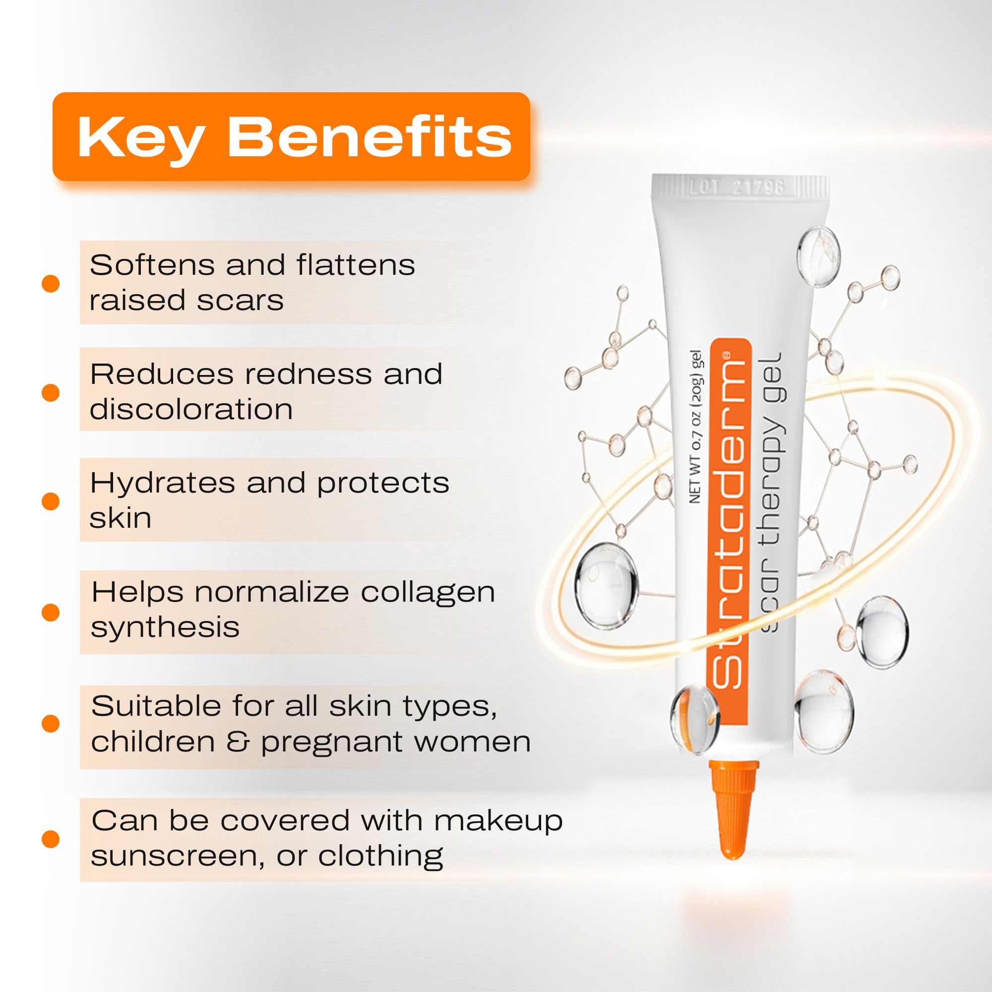 ONCE DAILY APPLICATION SCAR THERAPY GEL | Strataderm Professional Scar Therapy Gel Soothes, Alleviates Itch, Reduces Redness, & Helps Prevent Excessive & Abnormal Scar Formation After Skin Injuries, Burns, Surgical Incisions, Acne Breakouts, & Other Skin Trauma | Long-Lasting 20g Silicone Gel Comes in Tube for Easy Application
