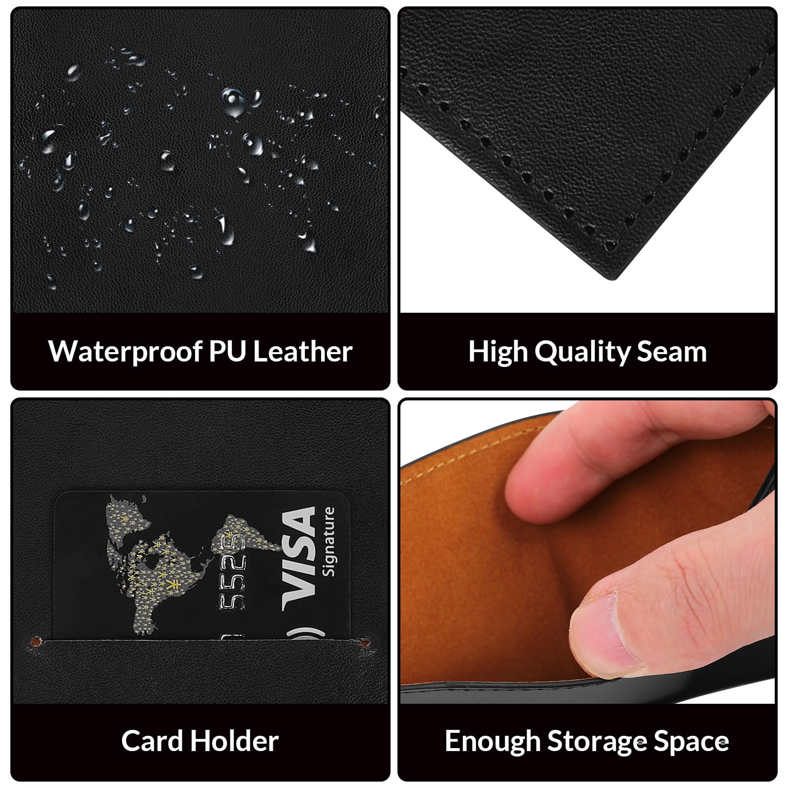 Fashionable and Durable Design: Made from waterproof premium PU leather, this sleek black wallet combines elegance with durability, serving as both a stylish budget wallet and a sturdy cash holder, ideal for everyday use or travel.
