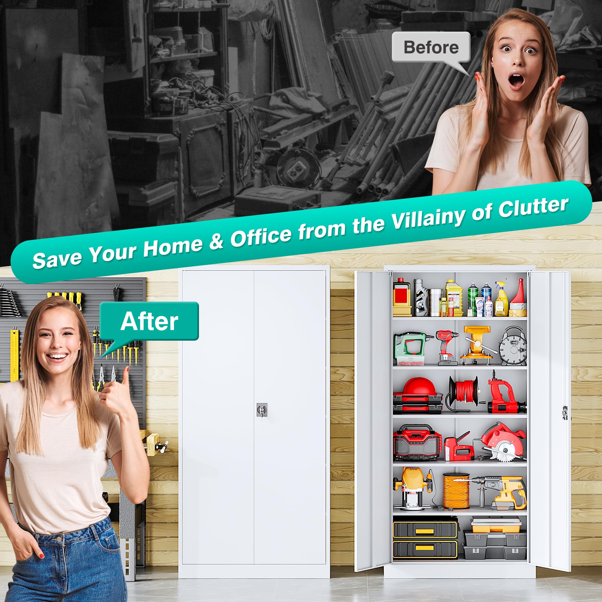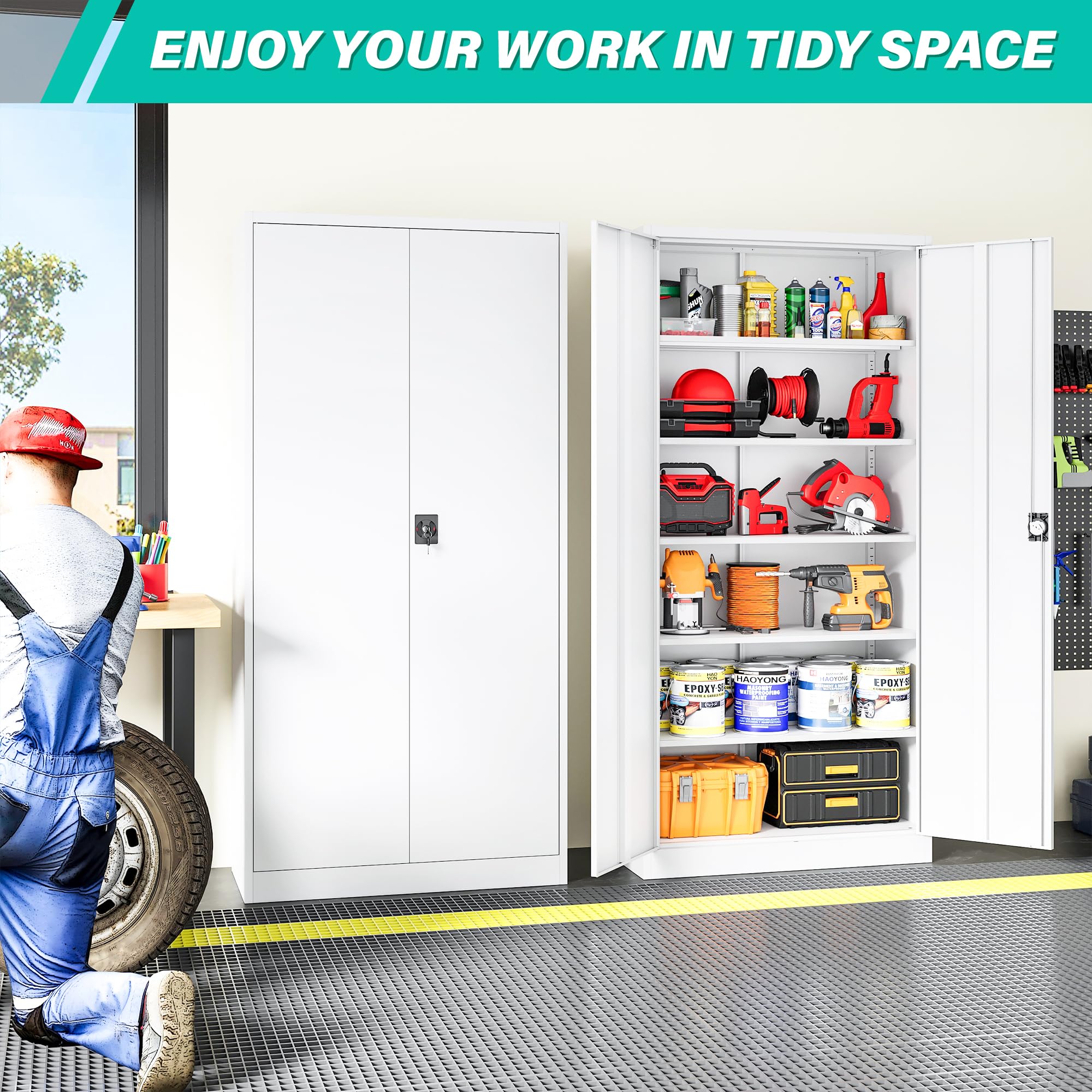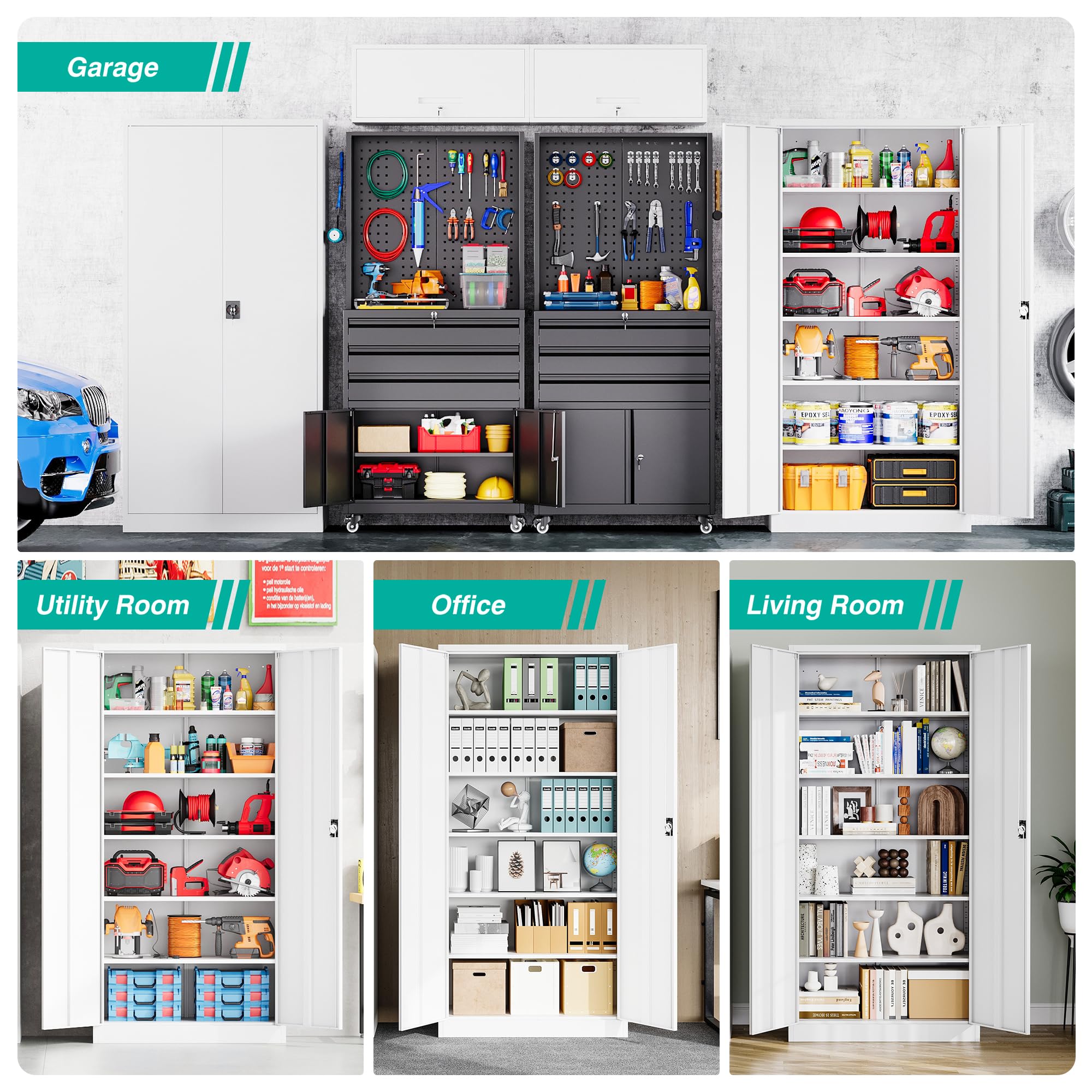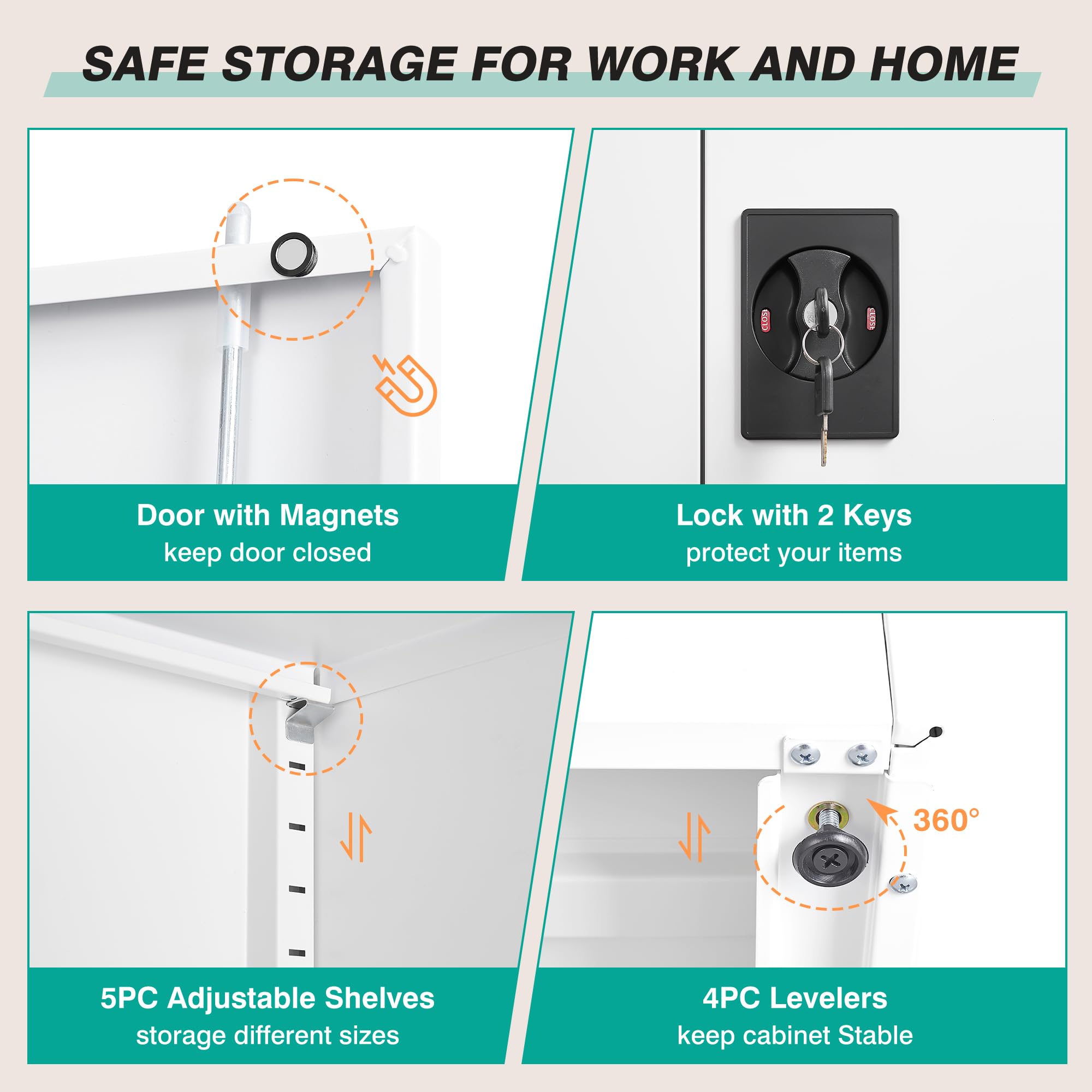 Lockable Storage Cabinets: Our metal storage cabinet come with locks and 5 adjustable shelf for a great fit and convenience. high end unlocks to protect valuables including keys. Whatever your storage needs, you can create a unique storage space that suits them