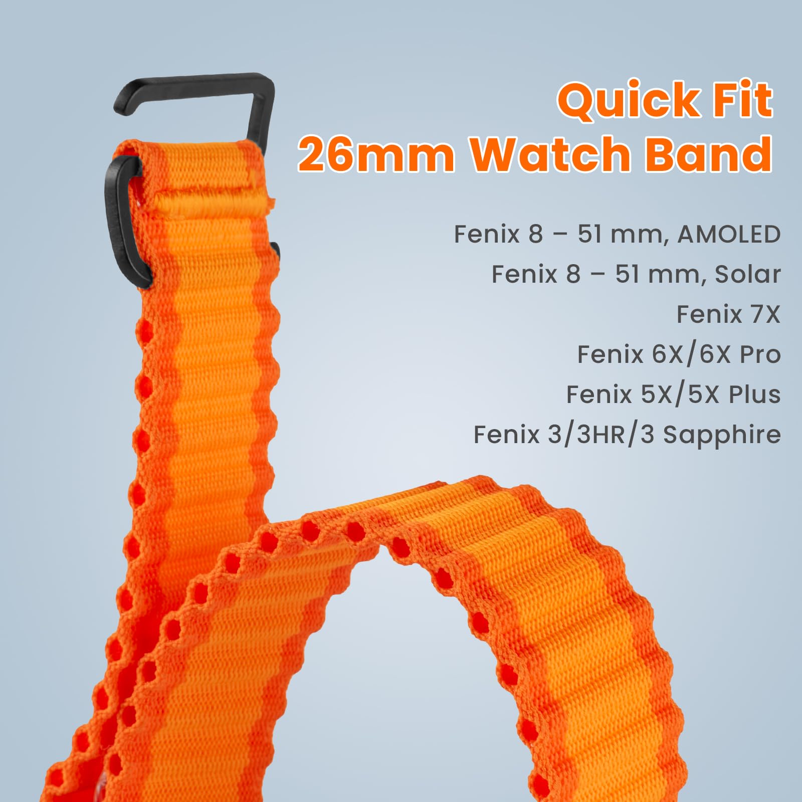 Description BANSO 26mm Quick Fit Nylon Watch Band for Garmin Fenix 5X/6X/7X/8 51mm Watch Band, 26mm Watch Bands for Garmin Instinct 2X /2X Solar/Instinct 3 50mm