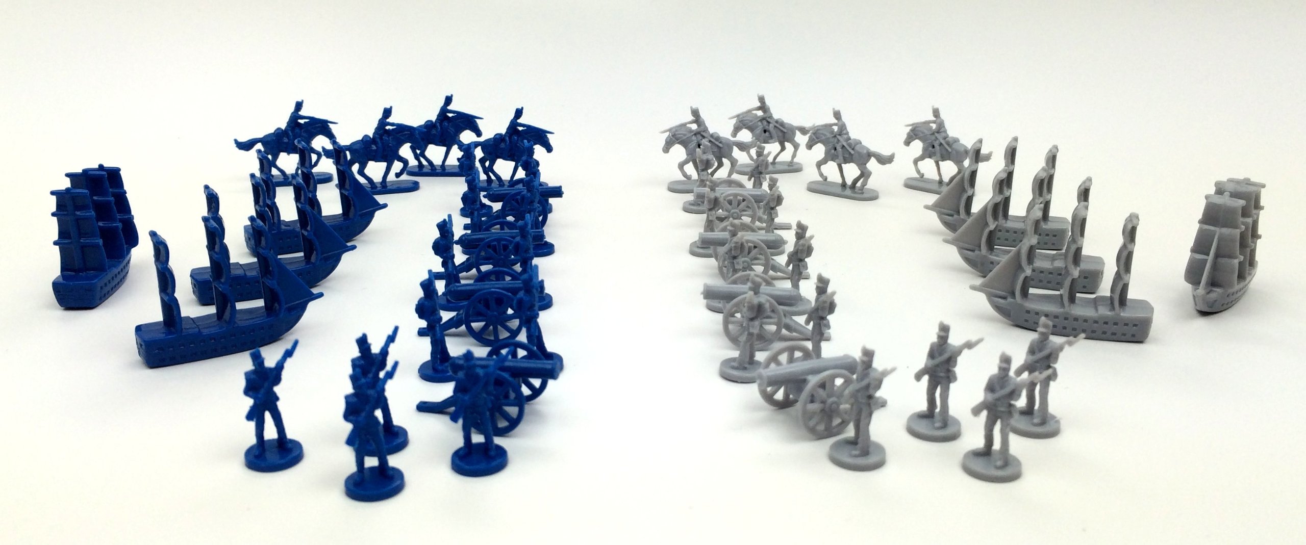 48 pieces total: 24 infantry, 8 artillery, 8 cavalry, 8 ships
