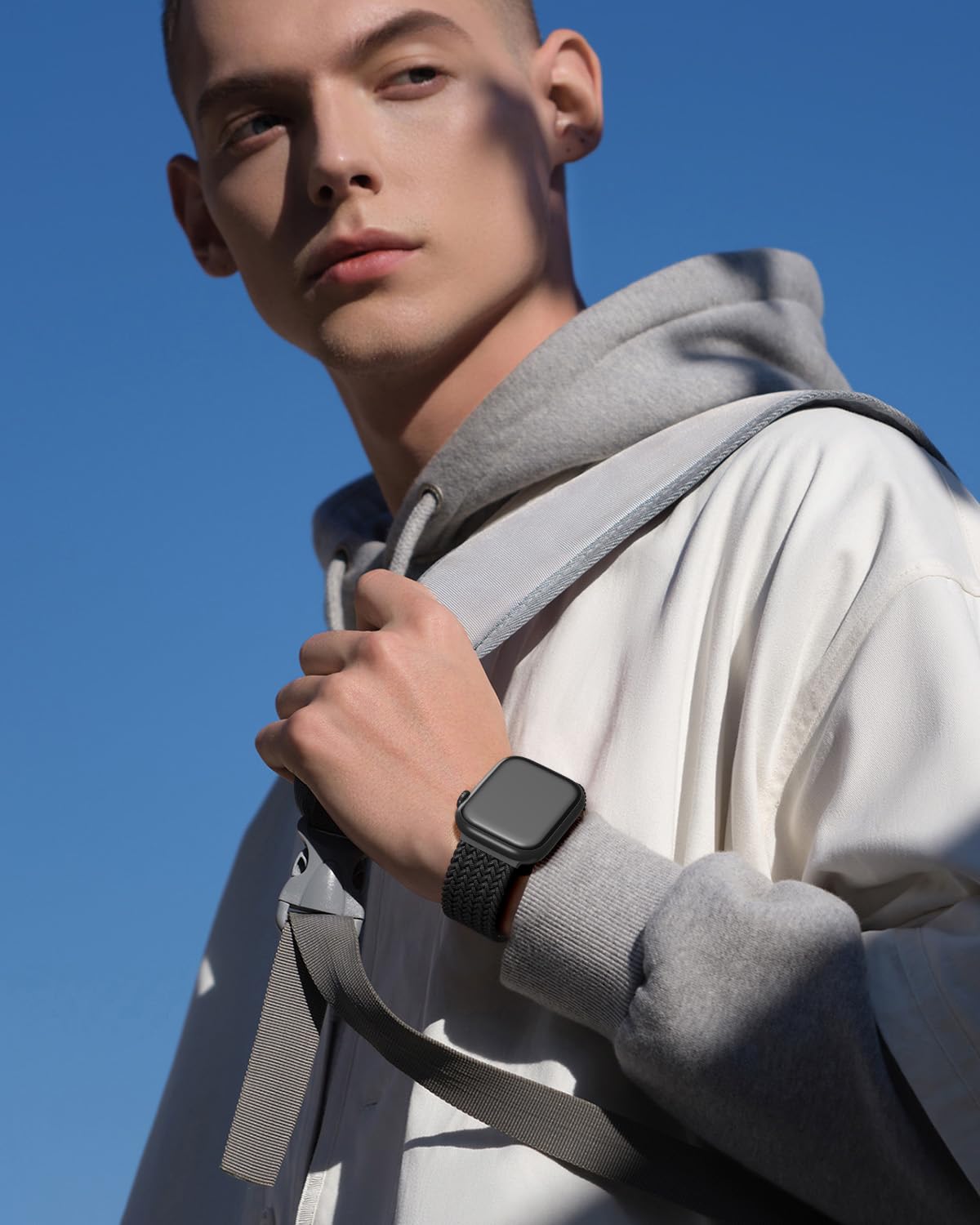 Confidently Secure with Upgraded Magnets: Experience the perfect blend of style and security with our braided stretch band for Apple Watch. The enhanced magnetic Closure creates a strong, reliable connection that is easily adjustable for a flawless custom fit. Designed for all-day comfort and peace of mind, it stays put during any activity. Tool-free installation and one-click removal make it incredibly easy to use