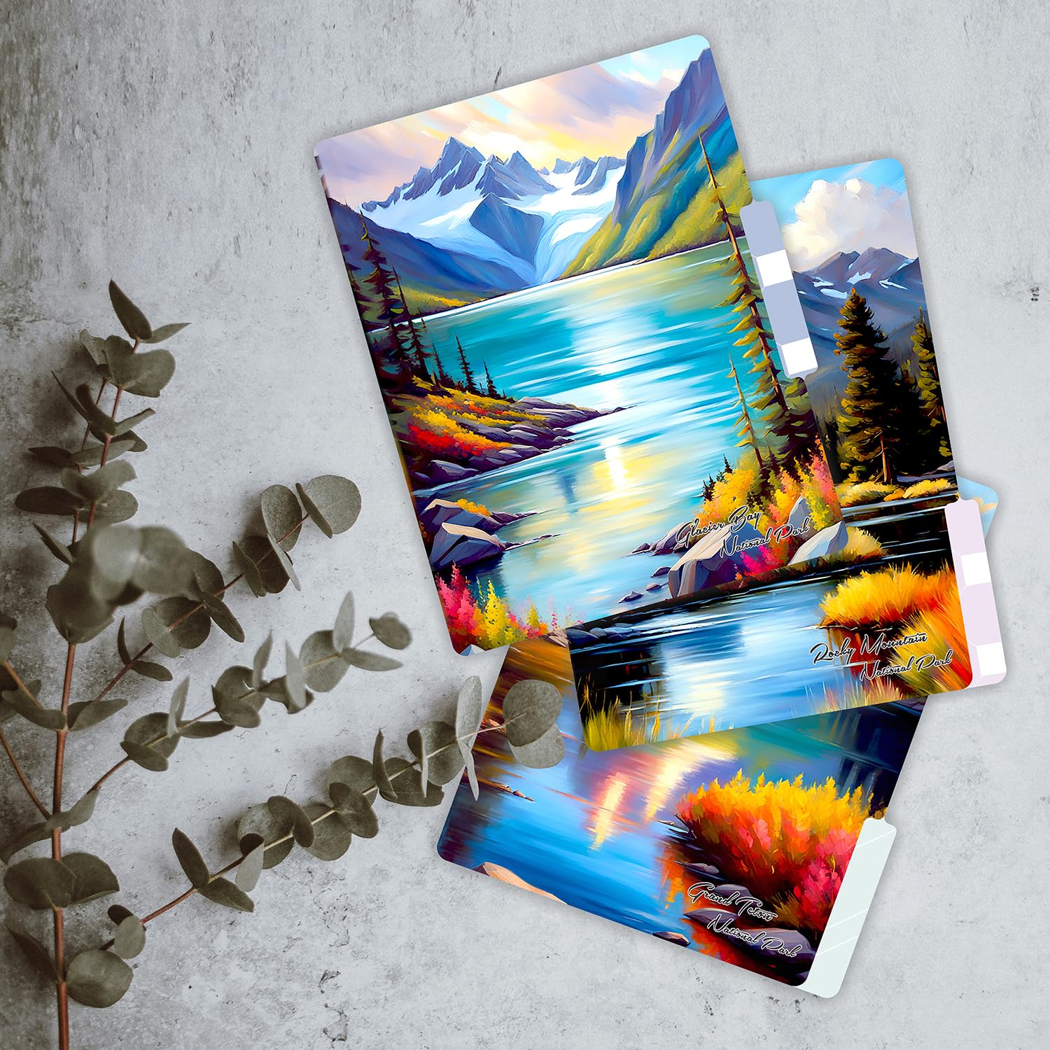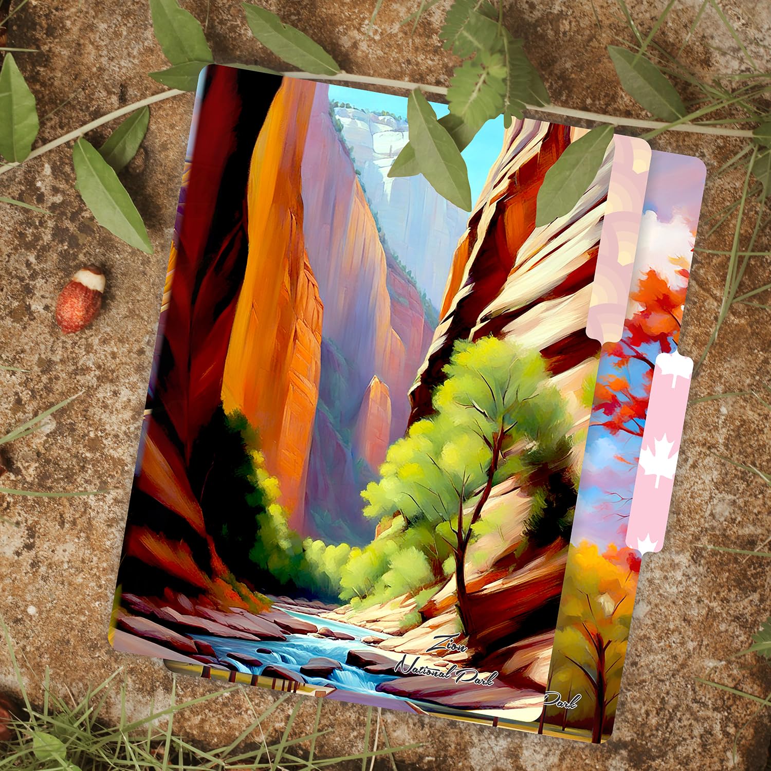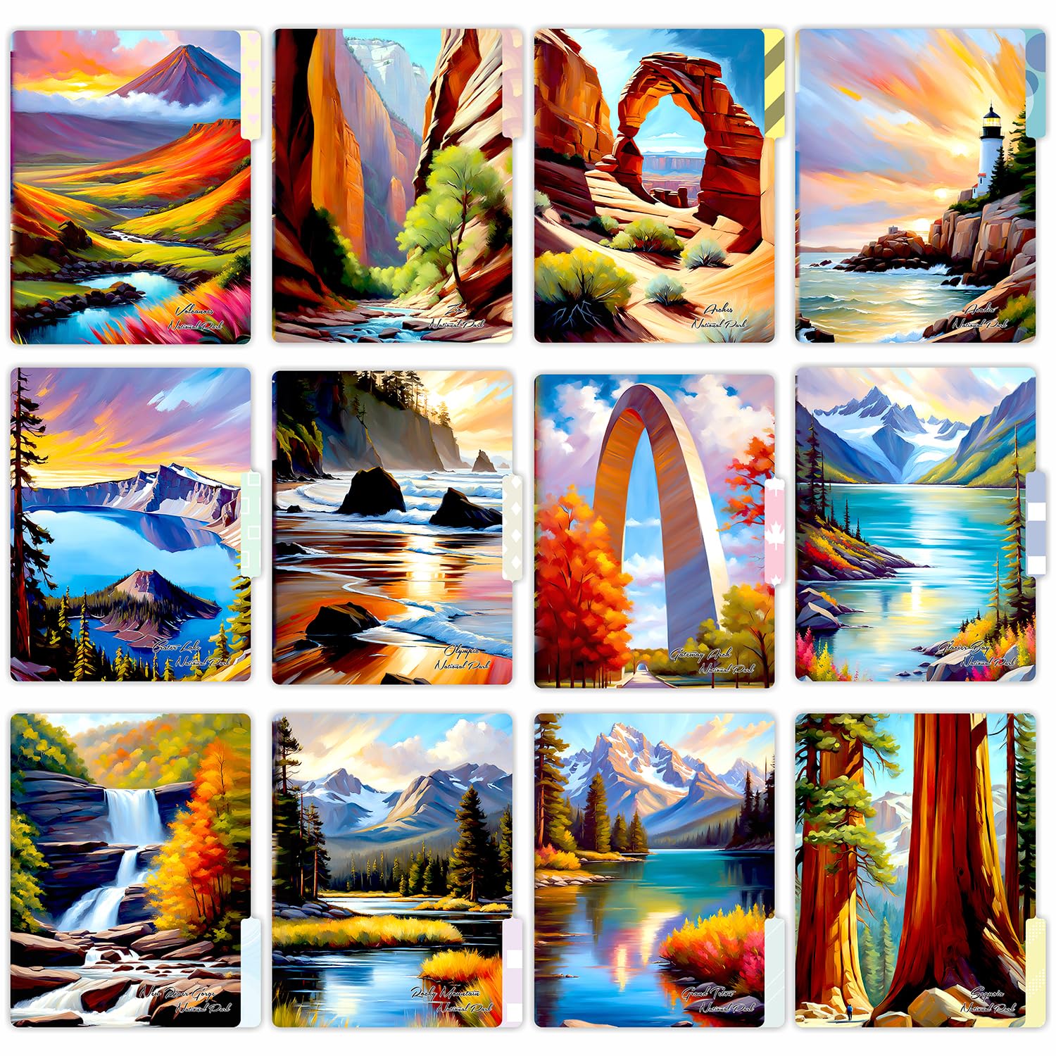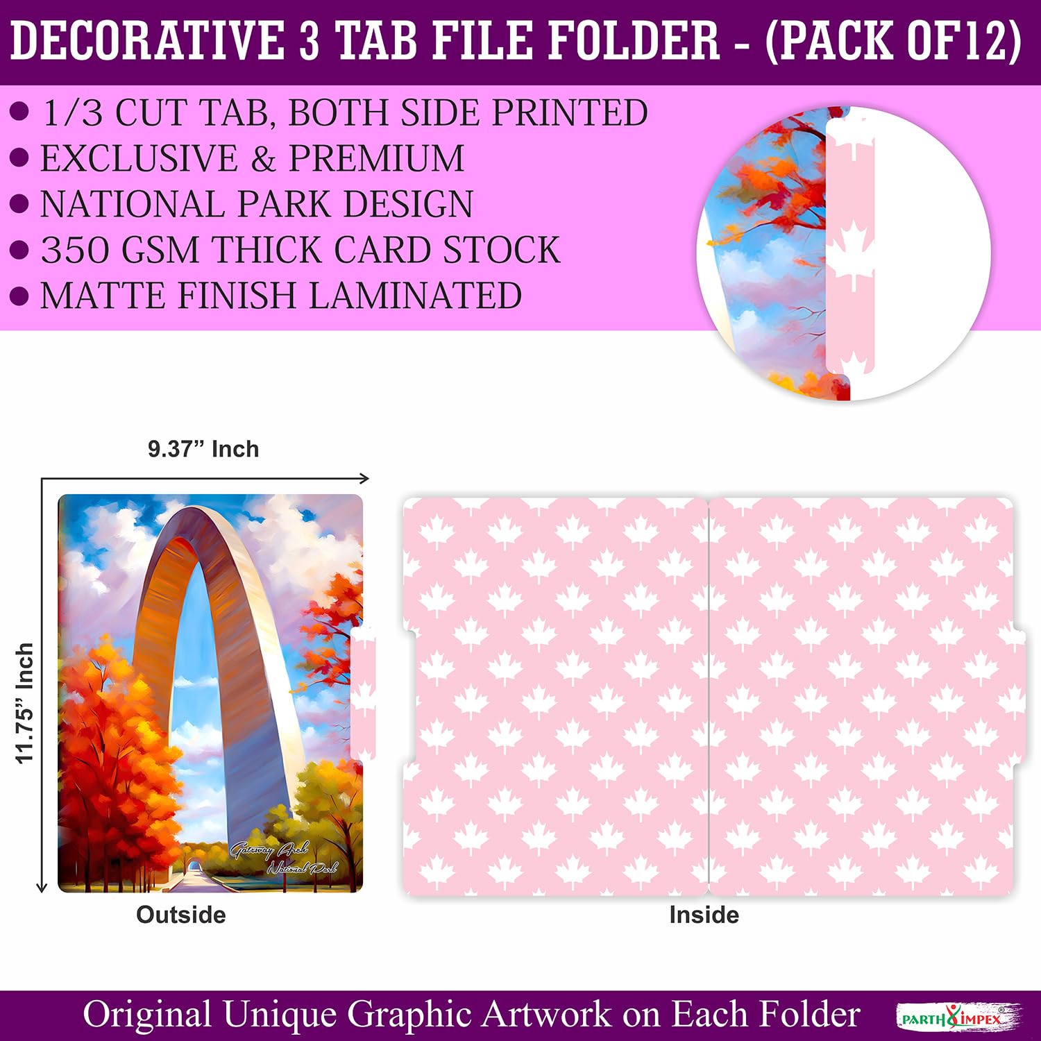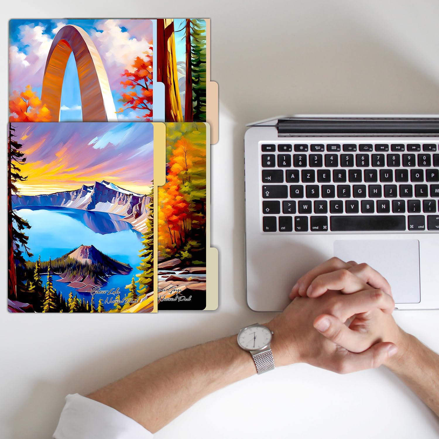 PACK of 12 COUNTS: Decorative Unique US National Parks File Folders with 1/3 Cut Tab in Assorted Positions.