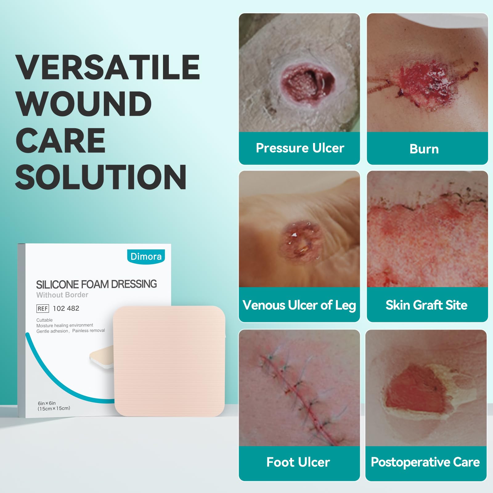 Hypoallergenic & Skin-Friendly - Made from medical-grade silicone, this foam dressing is gentle on the skin and suitable for all skin types, including sensitive skin. It reduces the risk of irritation or allergic reactions, ensuring comfort throughout the healing process.foam dressing 6x6 making it ideal for sensitive skin.