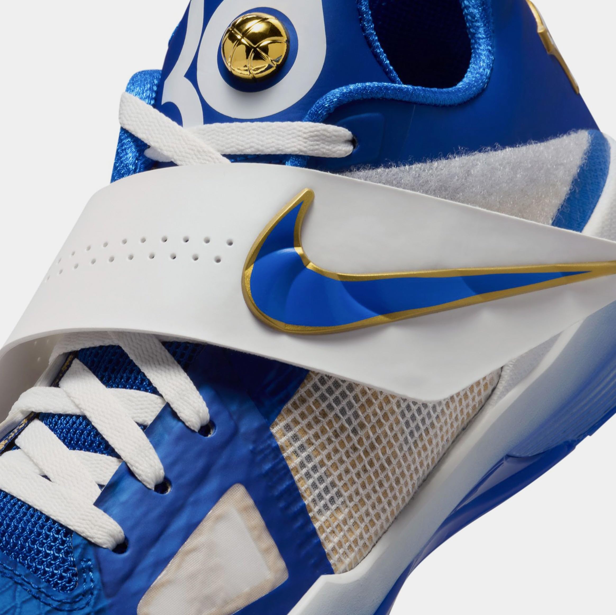 Description Reviving 90's nostalgia, this special-edition KD 4 returns to shake up bedroom hoops and rattle doorframes. With splattered straps and spray-painted tongue emblems, it's the 2011 collab that stormed the sneaker and basketball worlds. Court-ready with adjustable straps and a grippy gum sole for quick cuts, it also boasts a responsive forefoot Air Zoom unit for explosive first steps and full-court sprints.