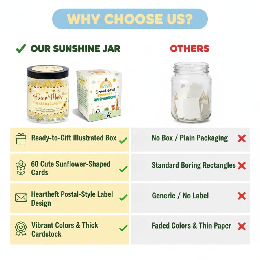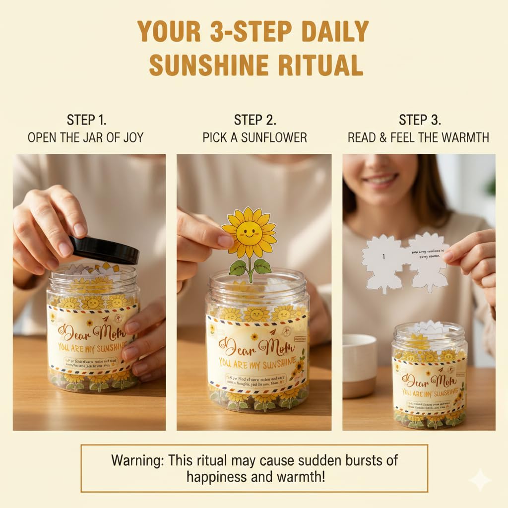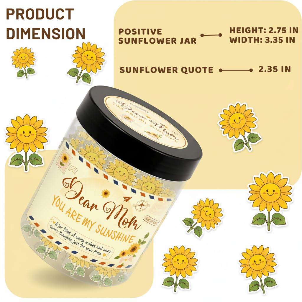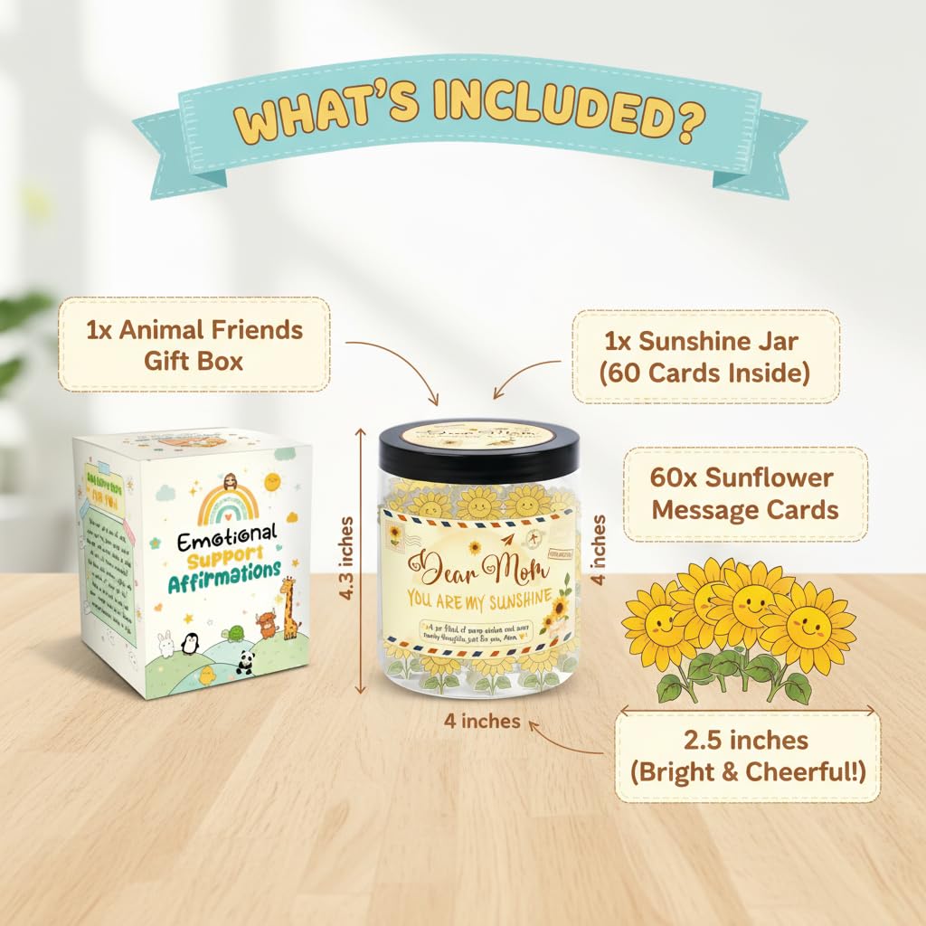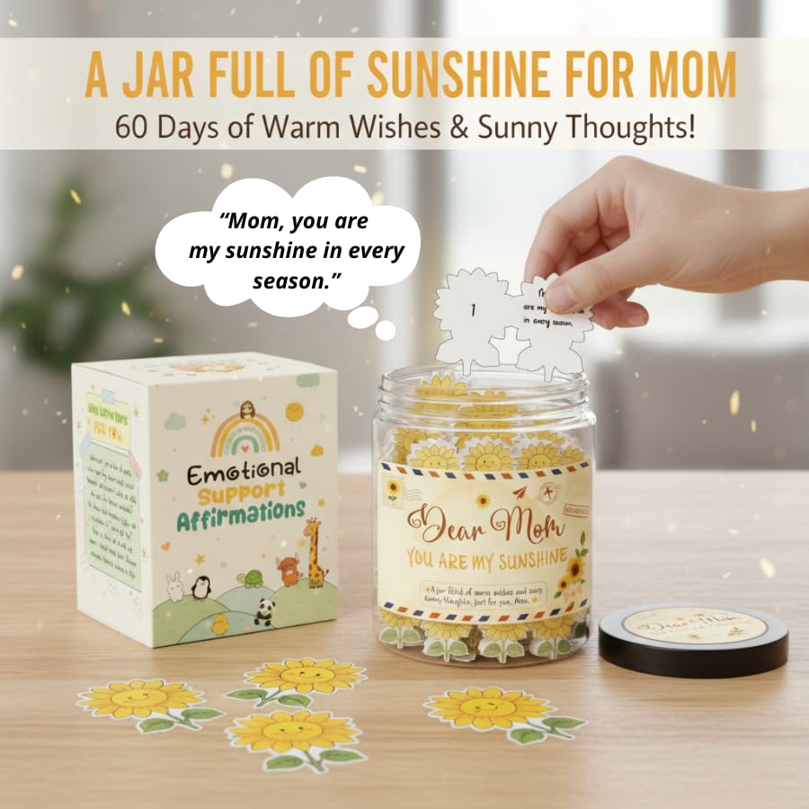 🌞 Daily Positivity & Encouragement – The Positive Sunflower Jar includes 60 uplifting affirmation cards to bring light, strength, and calm to your day — a perfect emotional support gift for mom or friend.