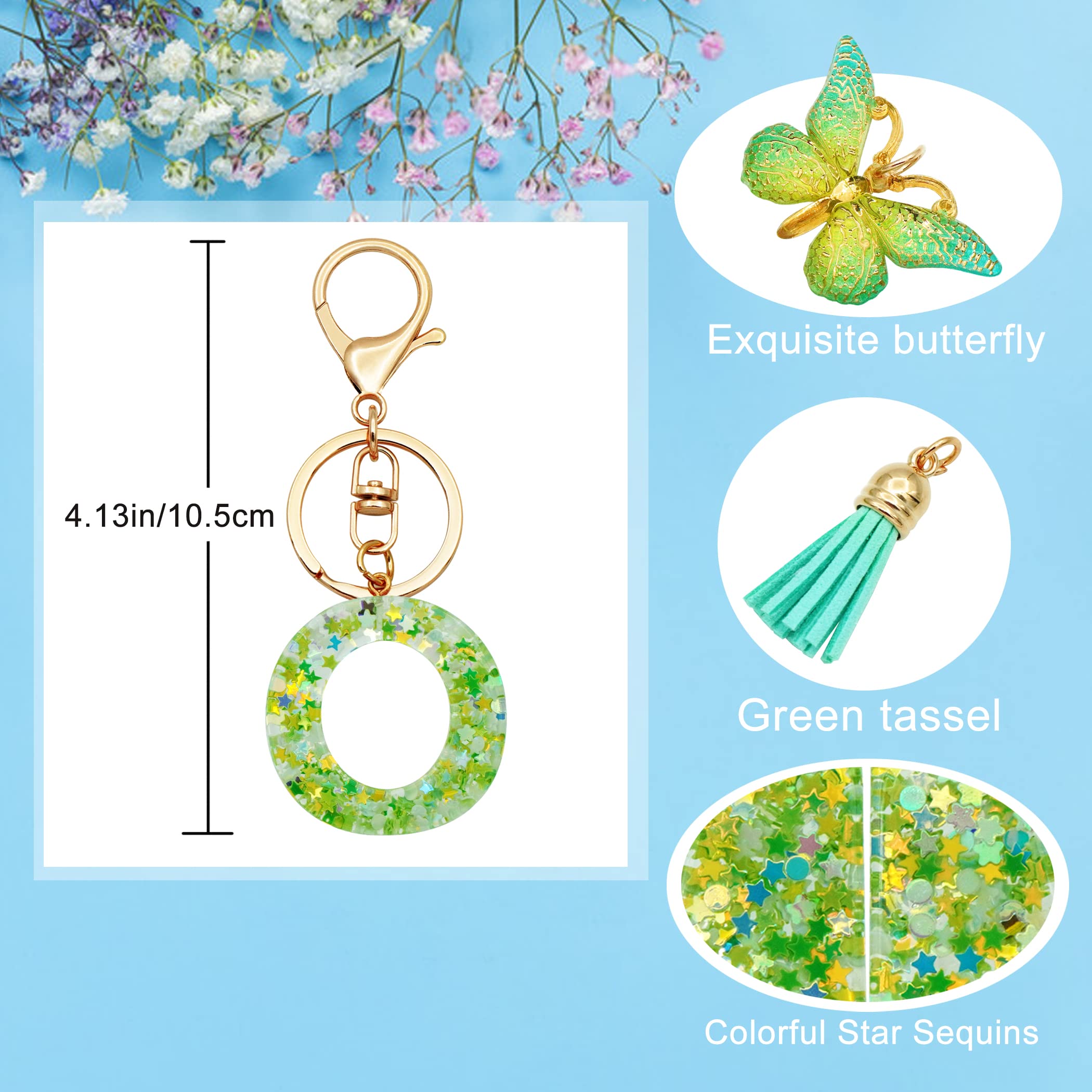 Initial Letter Keychains: This resin letter keychain is made of high quality epoxy resin material,come with a resin butterfly and Tassel,It goes well with your backpack and is very personalized.