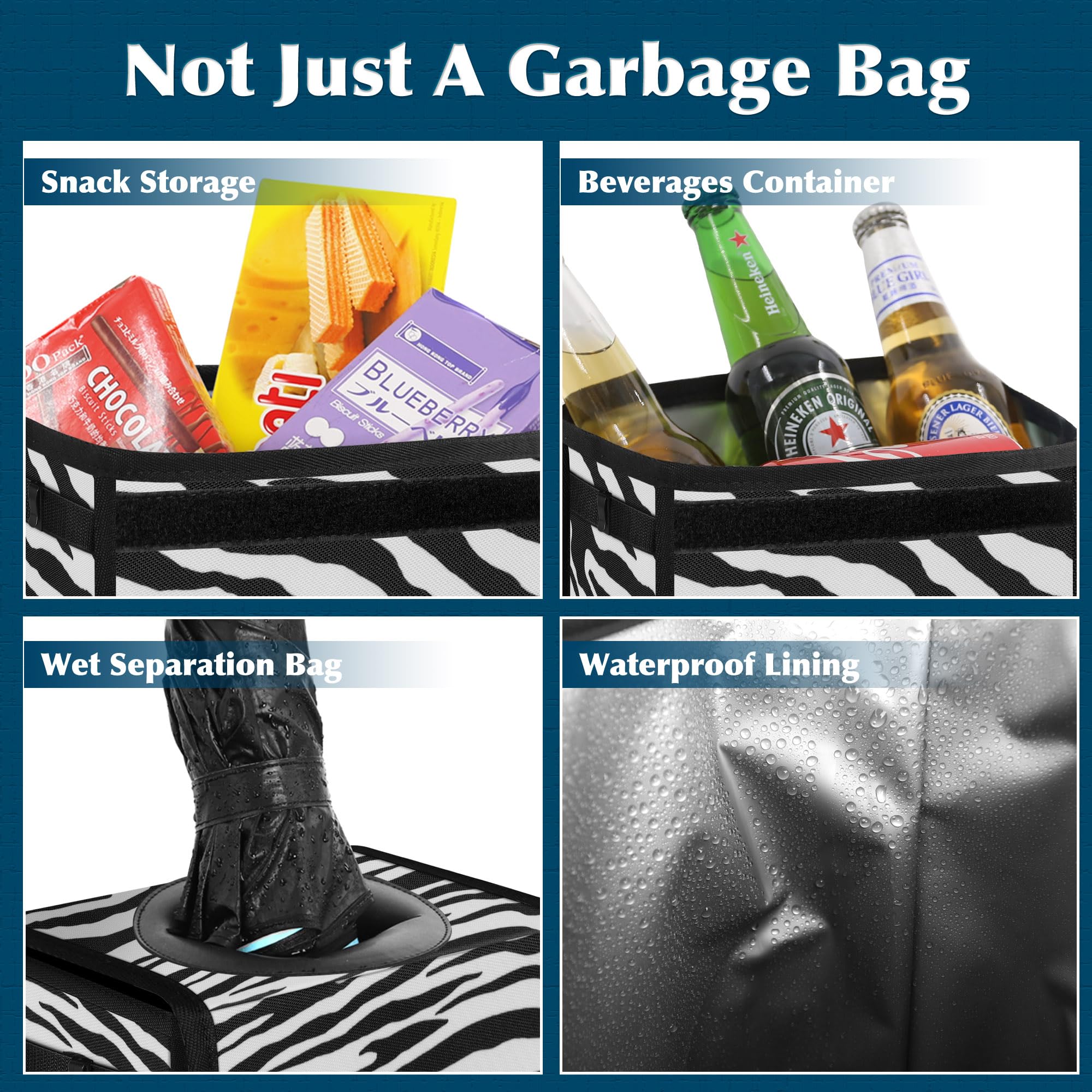 【PREMIUM MATERIAL 】This car trash bag is made of waterproof and durable 600D high-quality material, the inner material of the car accessories women is a waterproof and easy-to-clean PEVA lining. You can put it directly in the garbage, or put a disposable bag inside, and use two side clips to fix the handle of the bag, just keep everything clean.