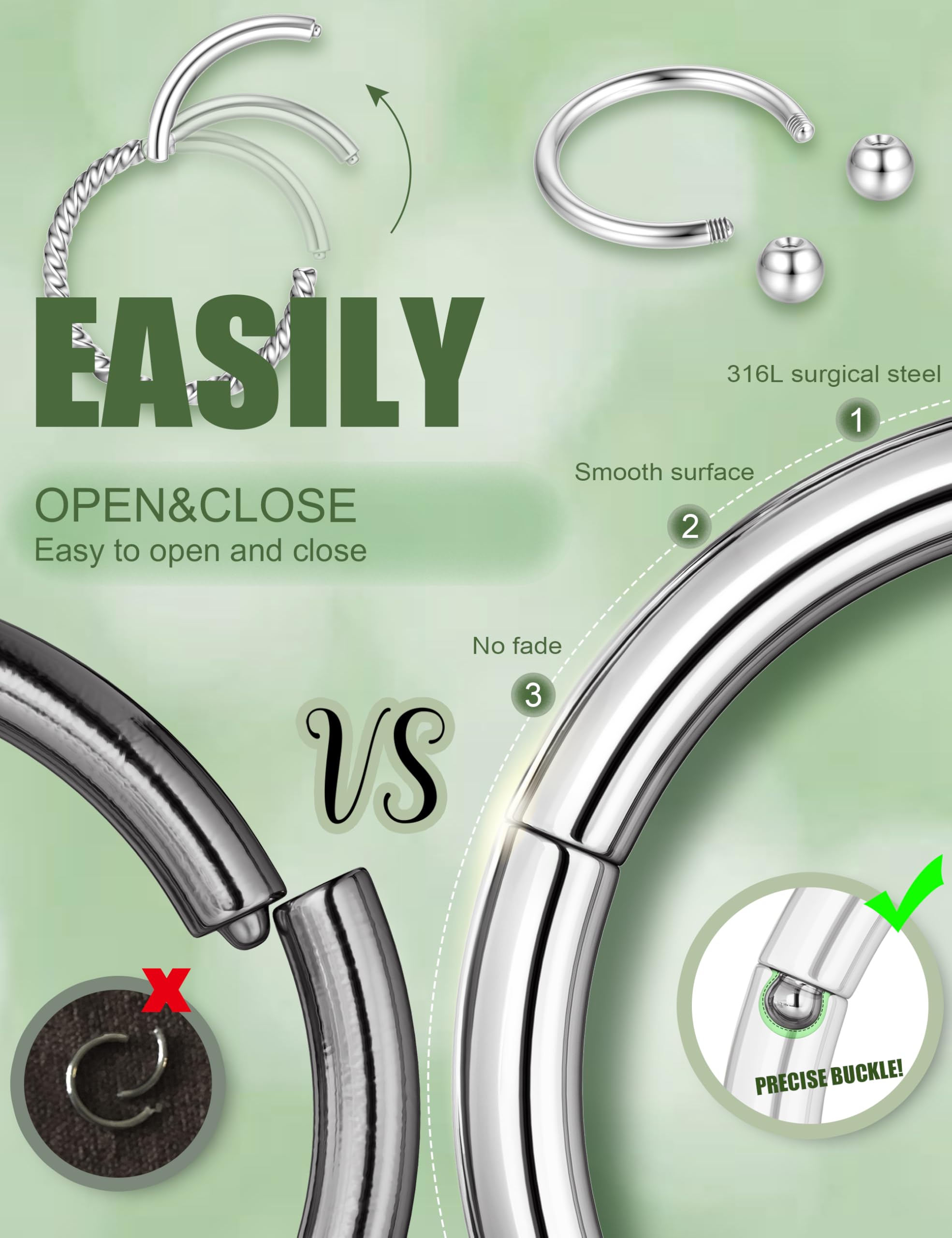 【Septum Piercing Jewelry】: One Order You Will Get The 12Pcs Septum Ring In Different Styles, Including Hinged Clicker nose Ring,Horseshoe Ring,Septum Piercing Ring,Etc. Dainty Nose Piercing Jewelry Meet You Different Needs, Bring You Different Charm Every Day