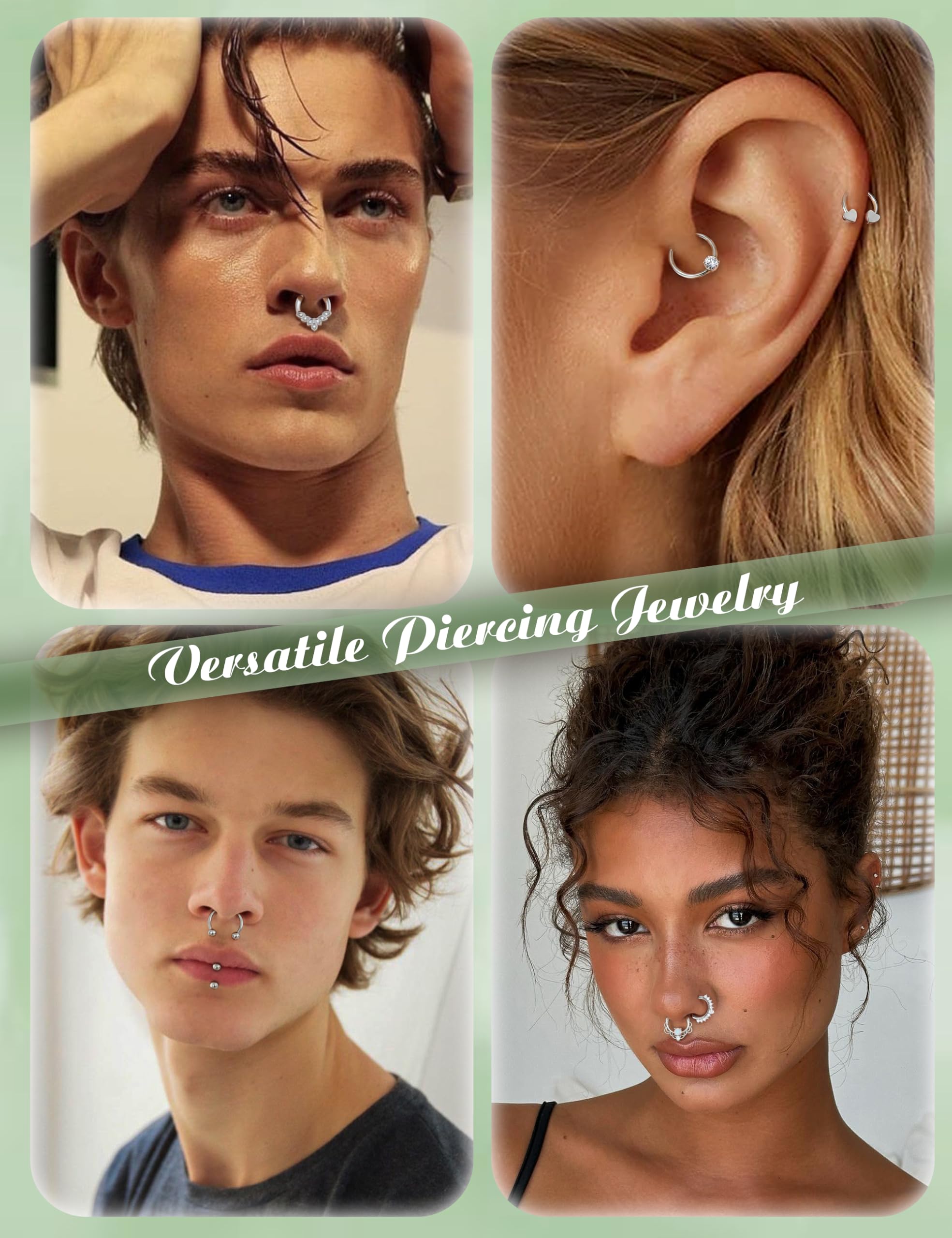 【Septum Ring Size】:Gauge: 16G=1.2mm, Nose Rings Inner Diameter:8/10mm. These Piercing Jewelry Can Be Used As Septum Ring,Nose Ring, Datih Hoop, Lip Ring, Helix Hoop, Tragus Hoop, Conch Ring, Nostril Piercing, Suitable For Women.