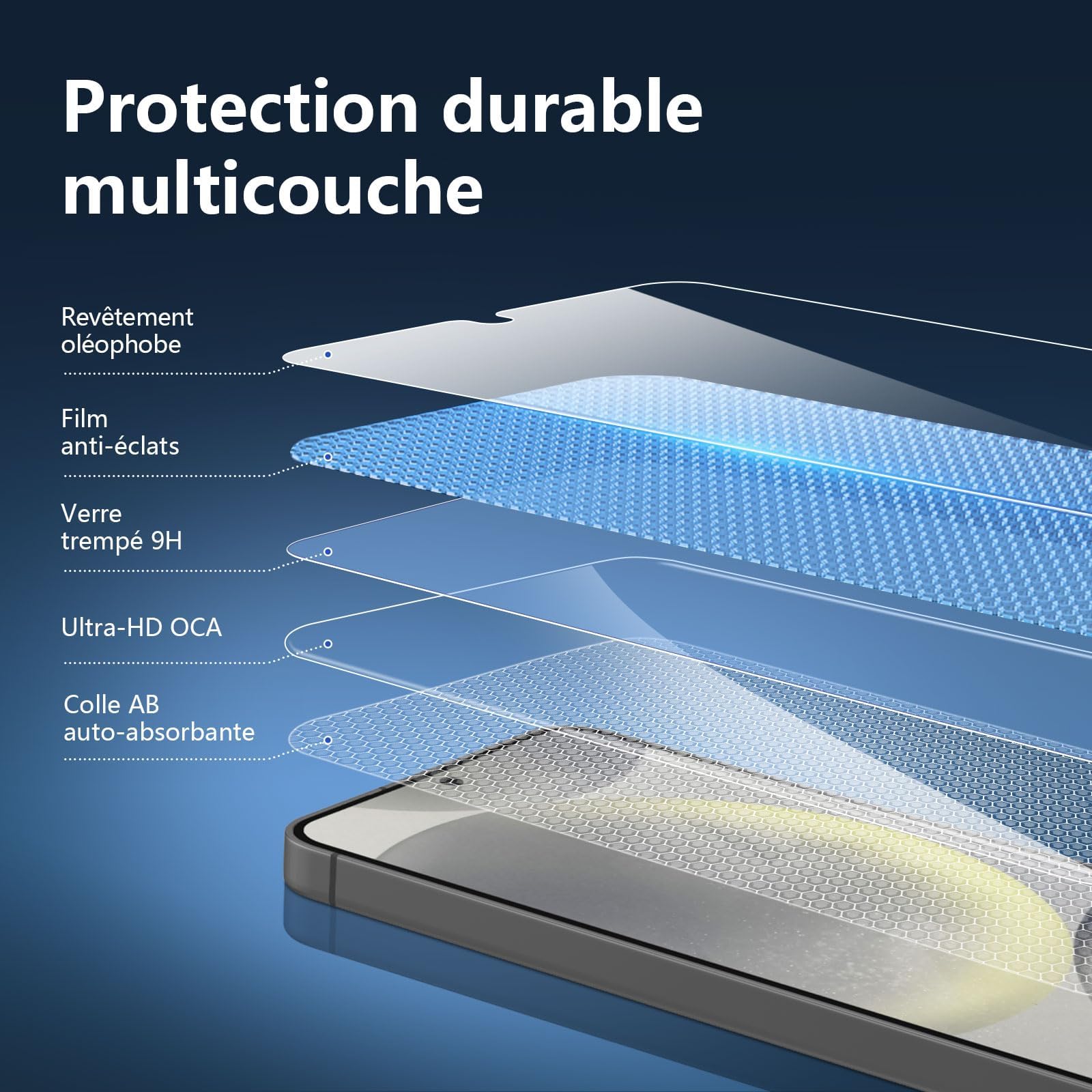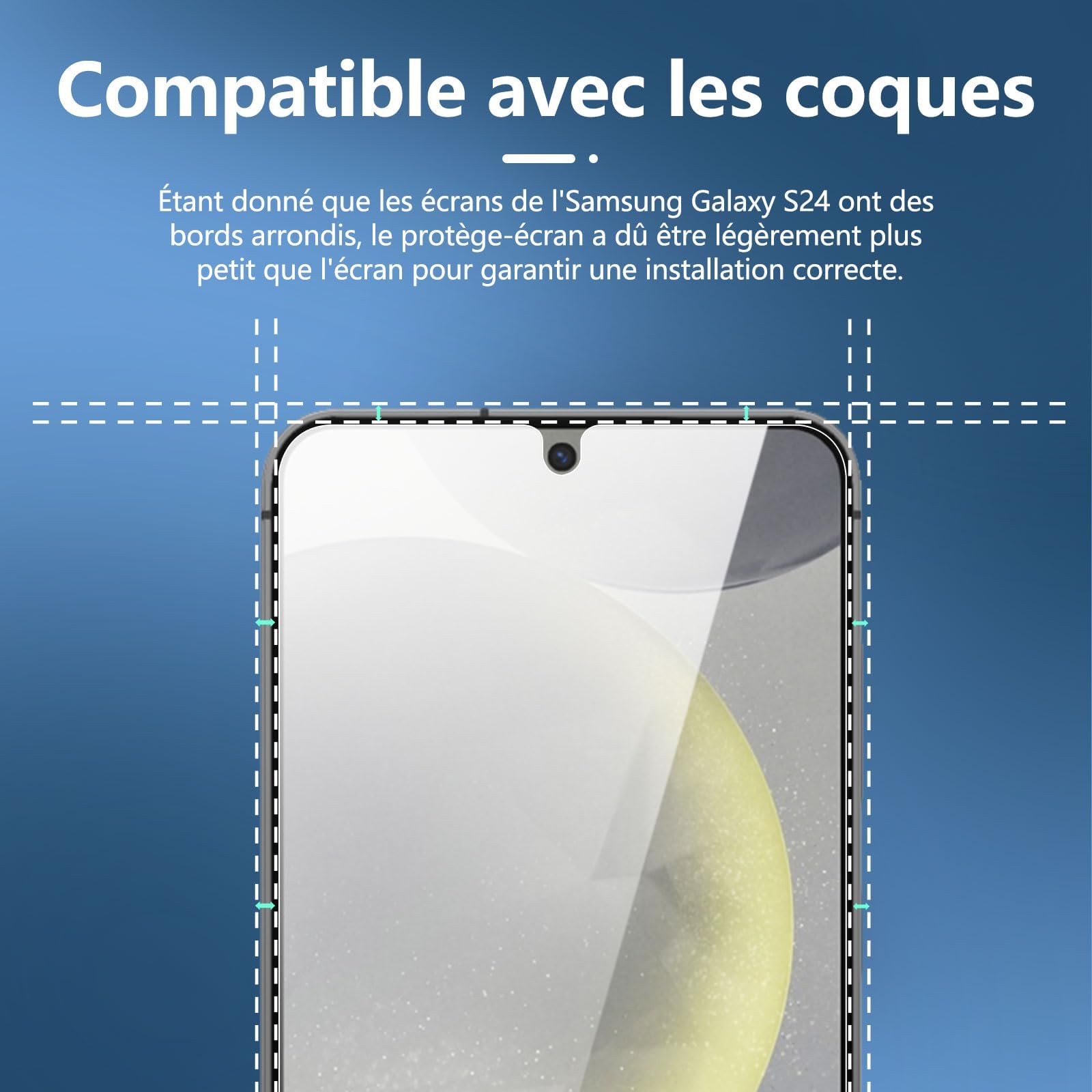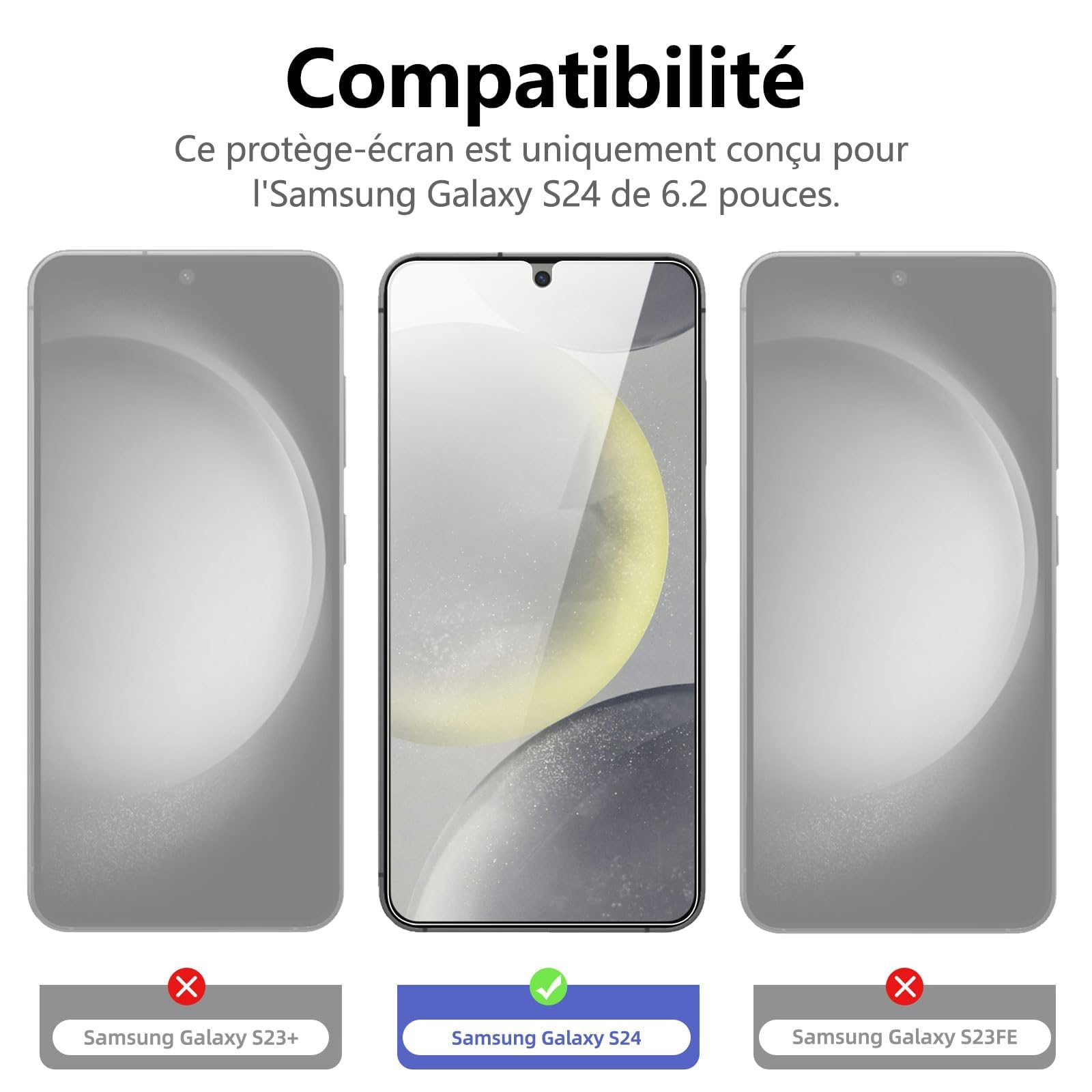 NEW'C Samsung Galaxy S24 Tempered Glass Screen Protector, delicate touch: coated on the back with a solid silicon adhesive which makes installation easy and attaches the film firmly so as not to affect the sensitivity of the touch screen.