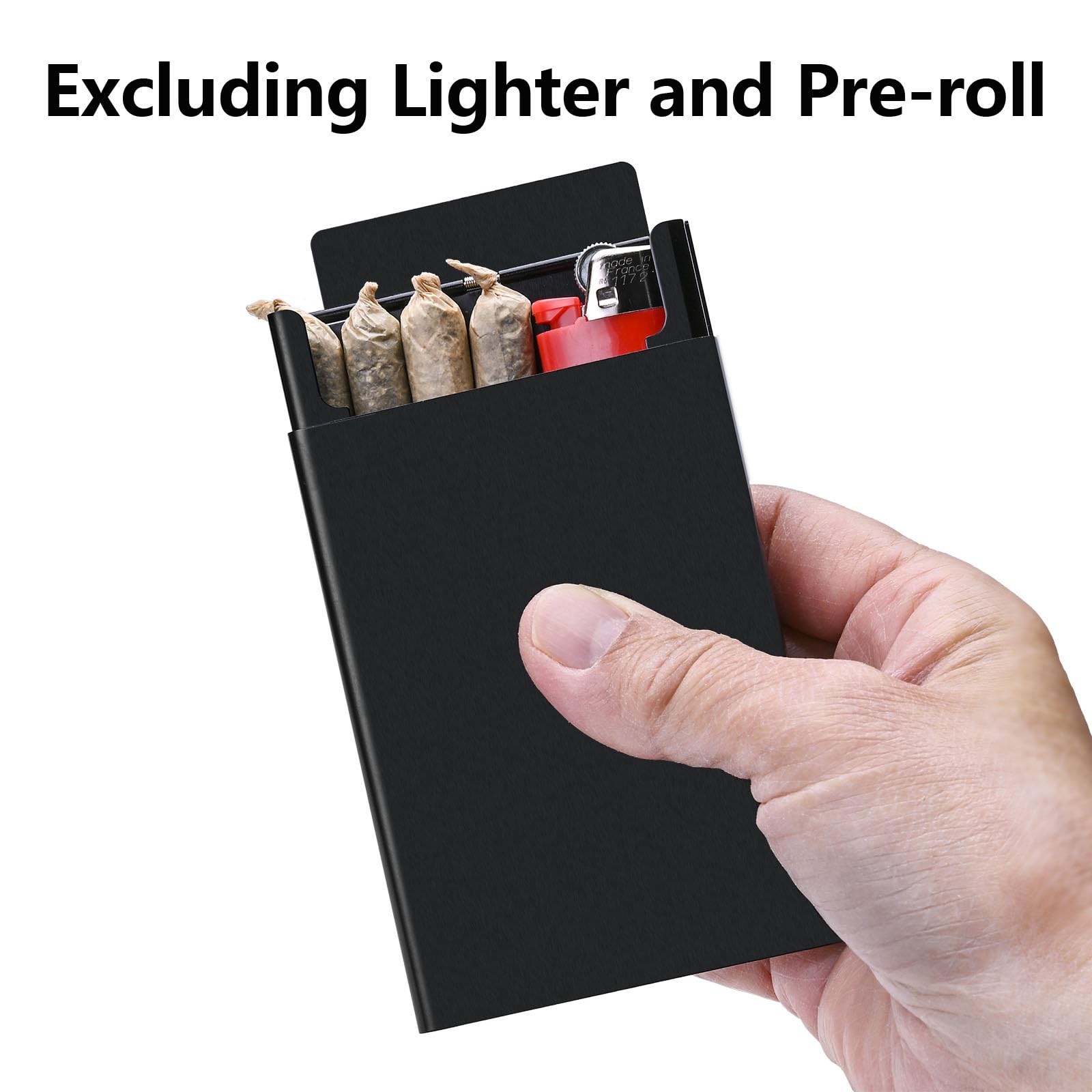 The Metal Pre-Roll Holder Case:The pre-rolled cone storage case is made from high-quality metal,Measuring just 3.8” L x 2.8” W x 0.7” H fit king size and 1 1/4 size pre rolled cone, this sleek, compact box is designed for maximum convenience. Its size allows you to comfortably carry it in your pocket or backpack with ease.