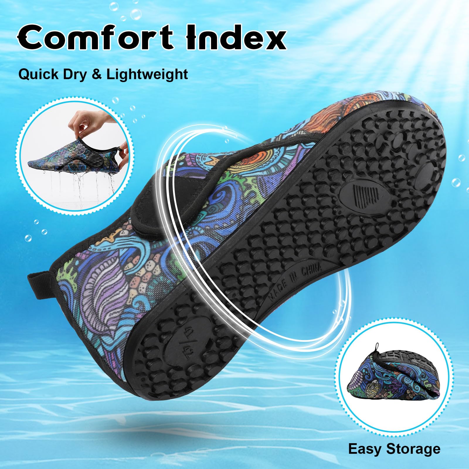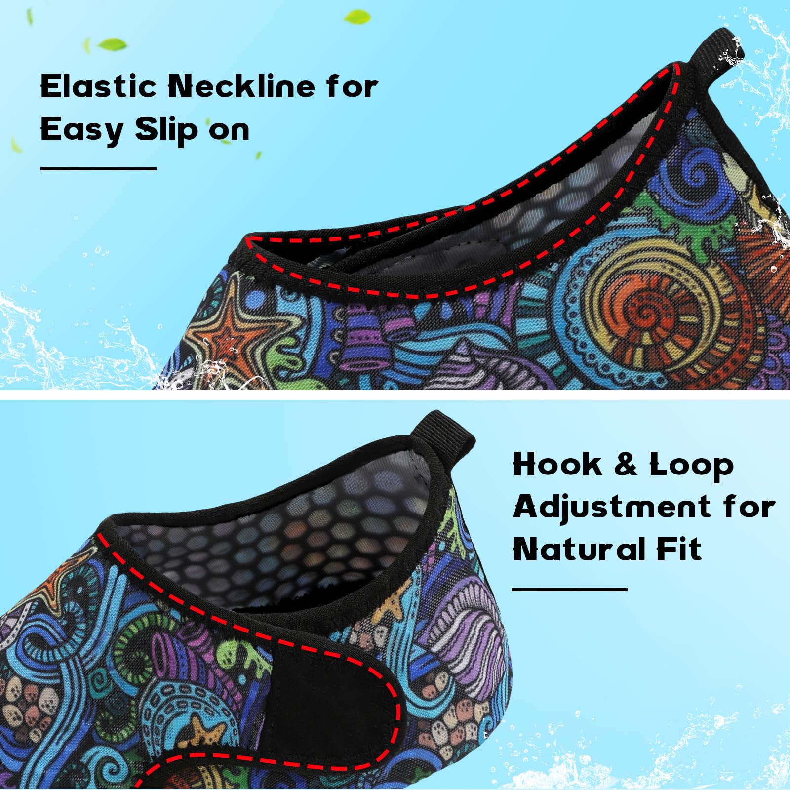〓 Comfy Quick-dry Water Shoes »» High stretchy upper with honeycomb mesh fabric or hollow-out knit fabric gives excellent cross ventilation and quick drying ability. Adjustable straps make sure of a natural fit for you, giving maximum comfort for any kind of water activities