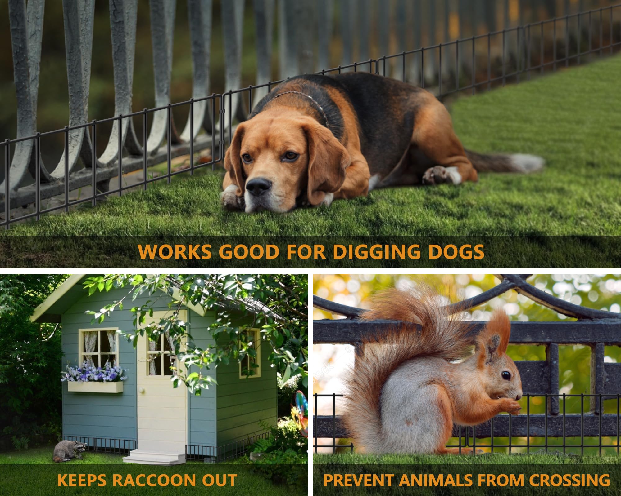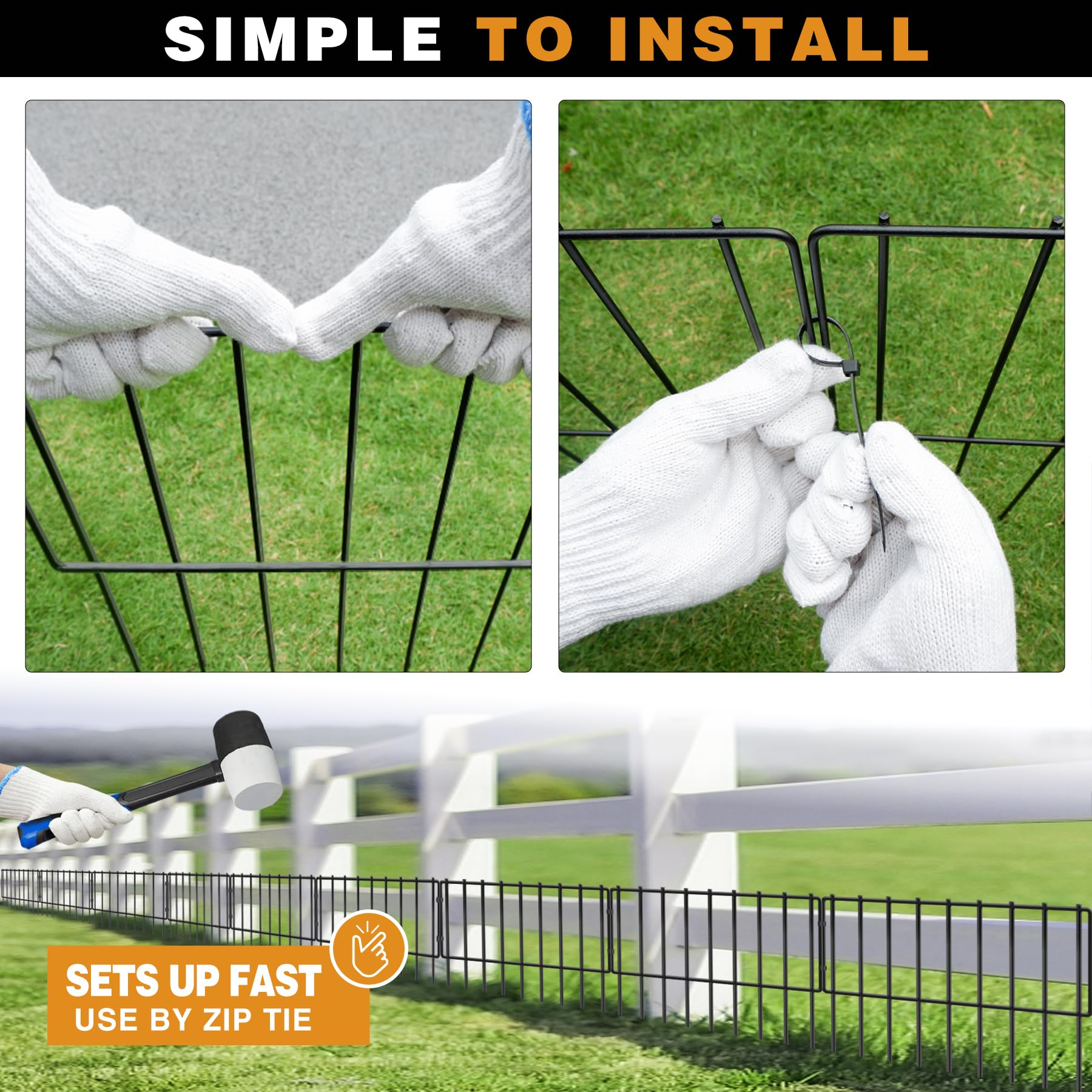 WIDE APPLICATION: You can take these fence panels as a no dig fence barrier to prevent your dog from digging under the fence and escaping from your garden. or take these fences as animal barrier fences to keep your dogs or small animals away from your flower beds, vegetable gardens, protect your plants. You can also use these fences as rabbit fence for garden, prevent rabbits from your sunflower field and causing damage.
