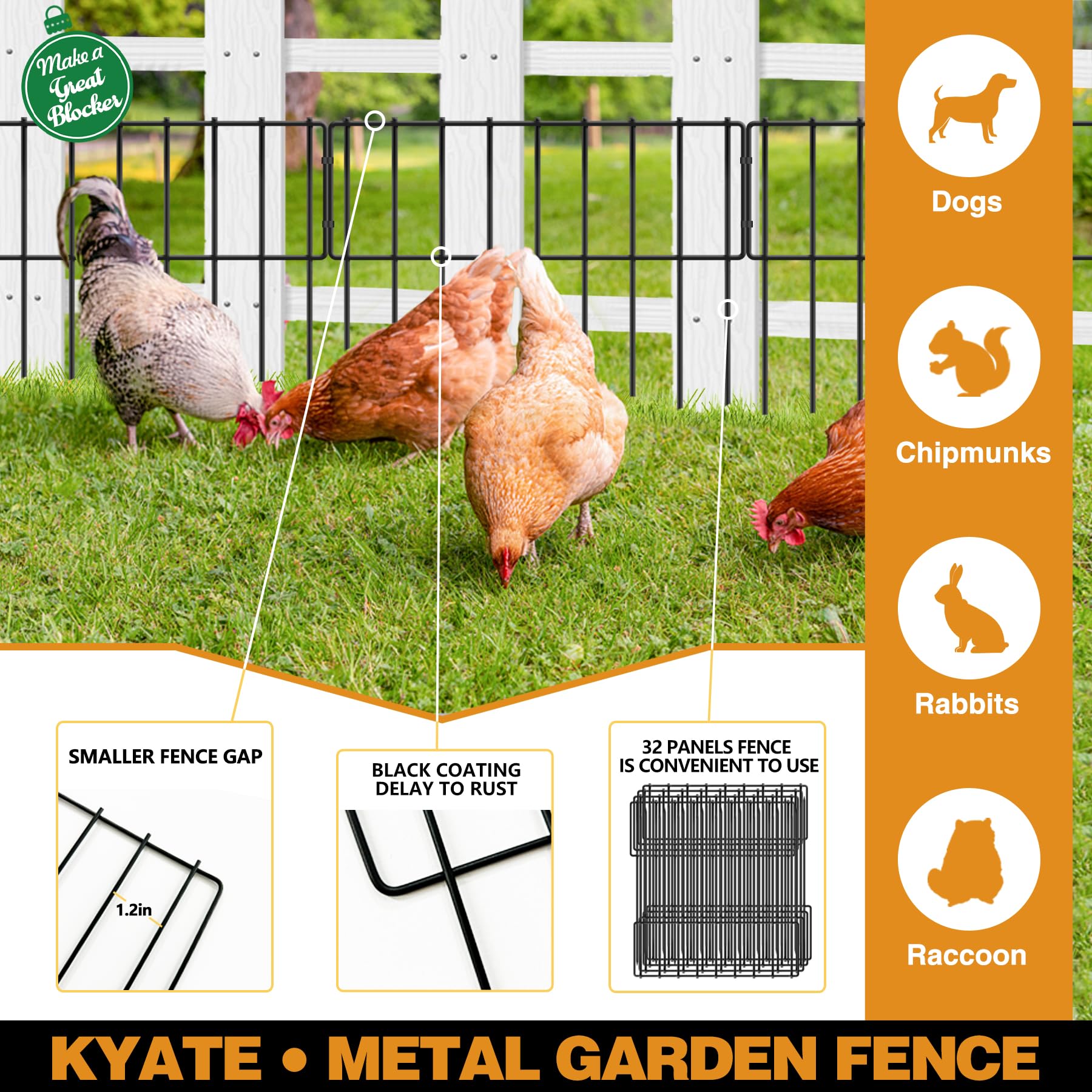 32 PANELS, 32FT SIZE: These animal barrier fences have 32 panels total 32ft, more fences, you can move it freely and install it in multiple places according to your needs, including effectively filling the gaps under the bottom of the existing fence, building garden edging border to avoid plant damaged, prevent pets from escaping or small animals from entering and damaging your yard from bottom of fence.