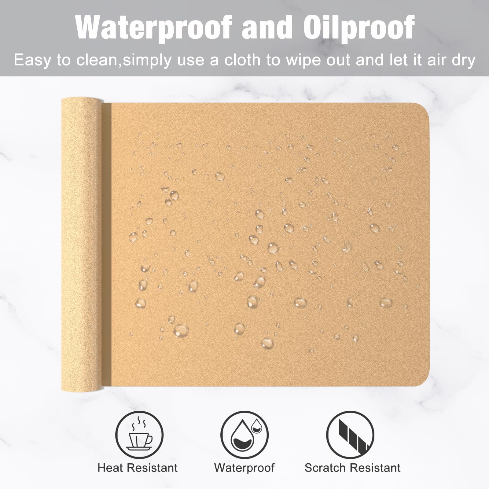 Non-slip Base & Waterproof Surface: Suede material used for the back side for slip resistance. Synthetic leather used for the upper use side, waterproof, oilproof and anti-fray. Deskpad is easy to clean with a wipe and features great locking-color effect
