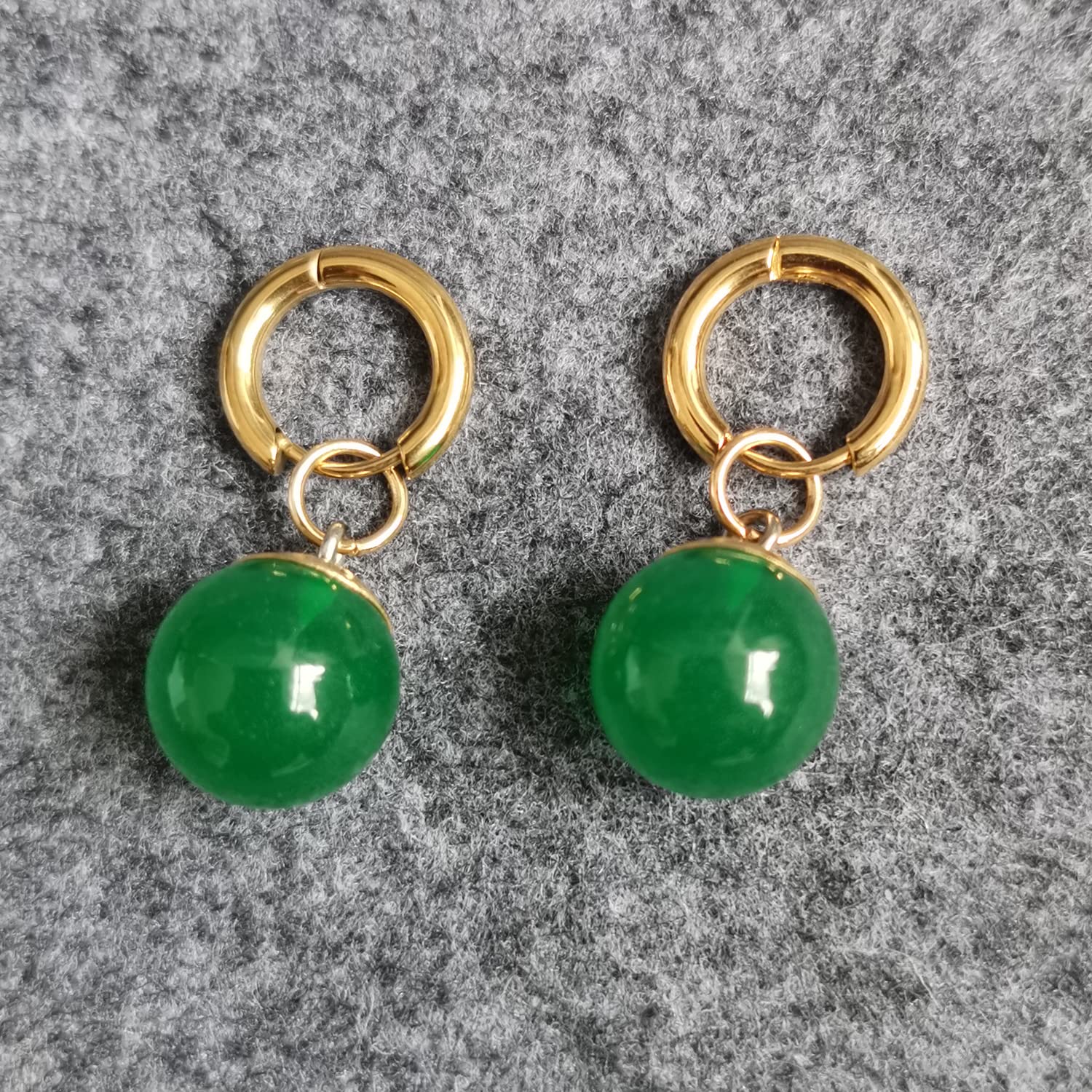 The balls are made of light resin.Wearing these earrings,you will not feel heavy at all