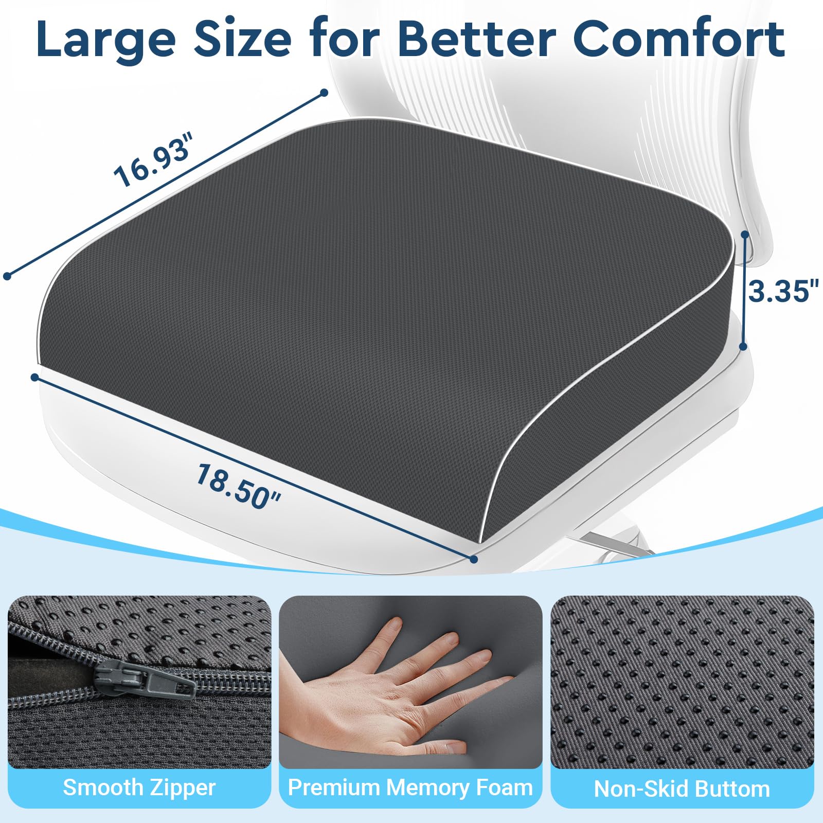 【Convenient & Easy to Maintain】The non-slip bottom keeps the cushion securely in place on your seat. The breathable cover features a smooth, sturdy zipper for easy removal, and is machine-washable to maintain with minimal effort