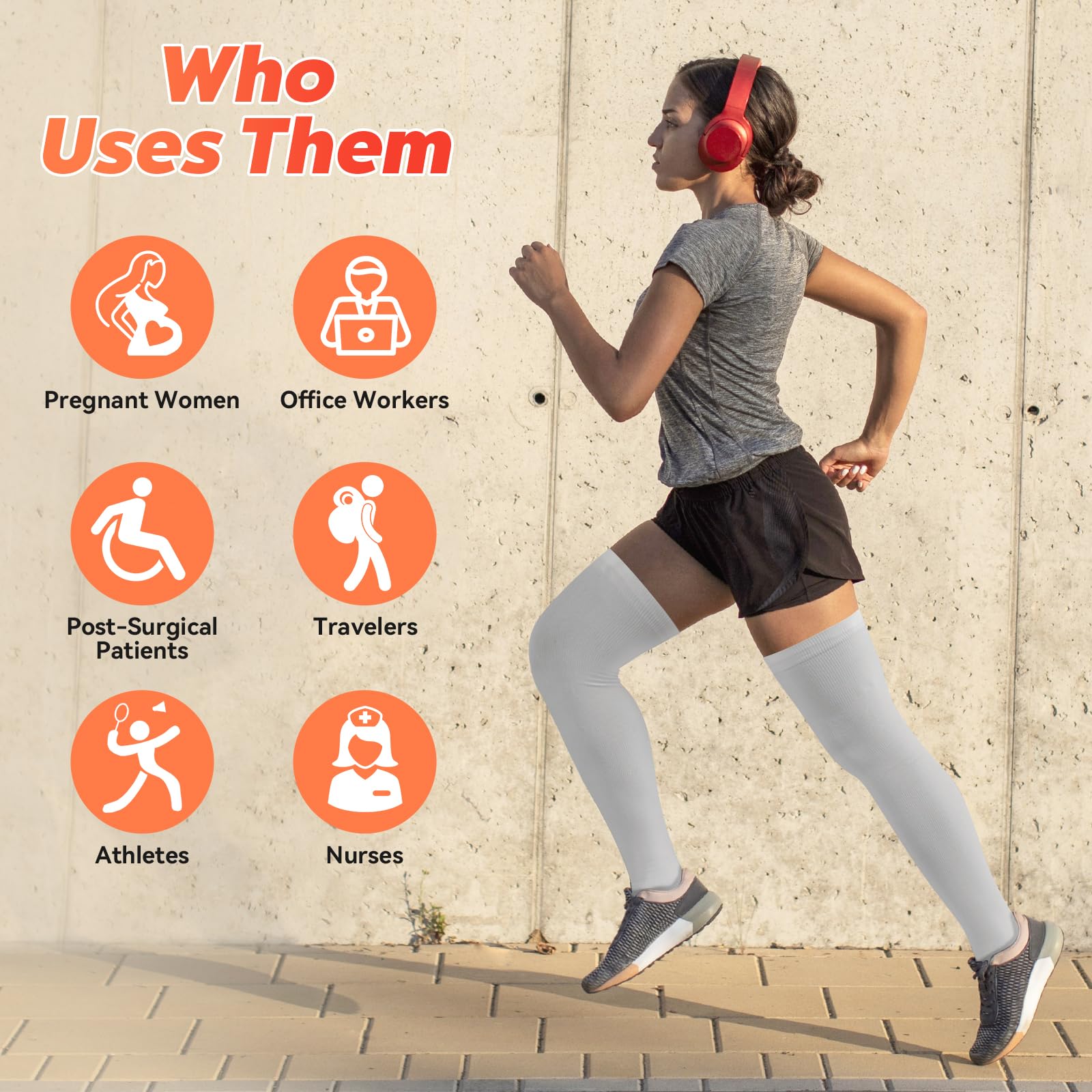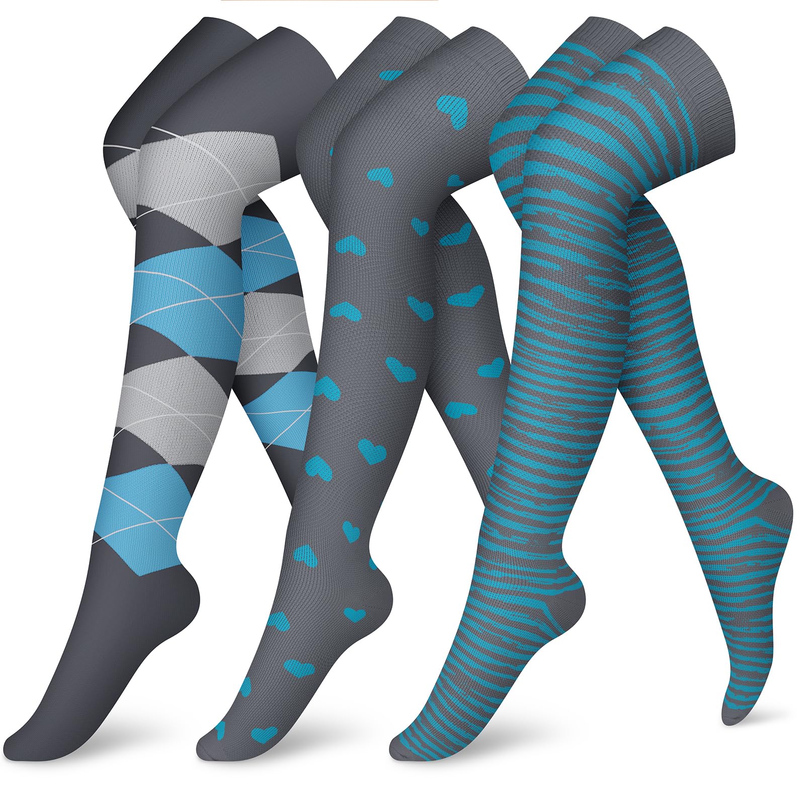Stylish Variety: Available in a variety of colors, these over the knee compression socks break away from boring nude shades to suit different occasions. The upgraded, longer design ensures a perfect fit and unparalleled support, no matter your height
