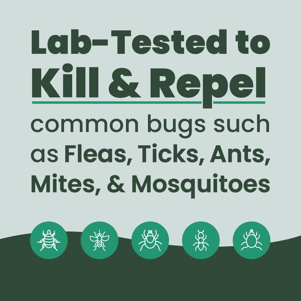 🦟 REPELS & CONTROLS: Kill & Repel a wide range of insects including Ticks, Mosquitoes, Fleas, Chiggers, and more.