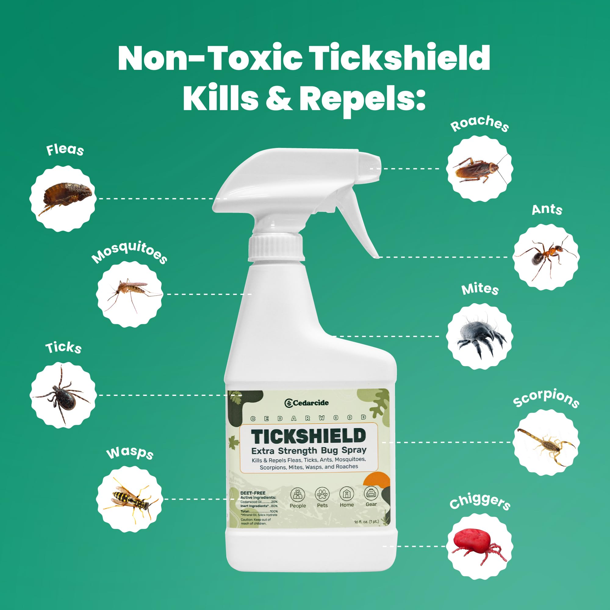 🌎 TOUGH ON TICKS SAFE ON THE ENVIRONMENT: Tickshield is a plant-based and family-safe bug spray for use directly on people, indoor spaces, and pets over 20lbs