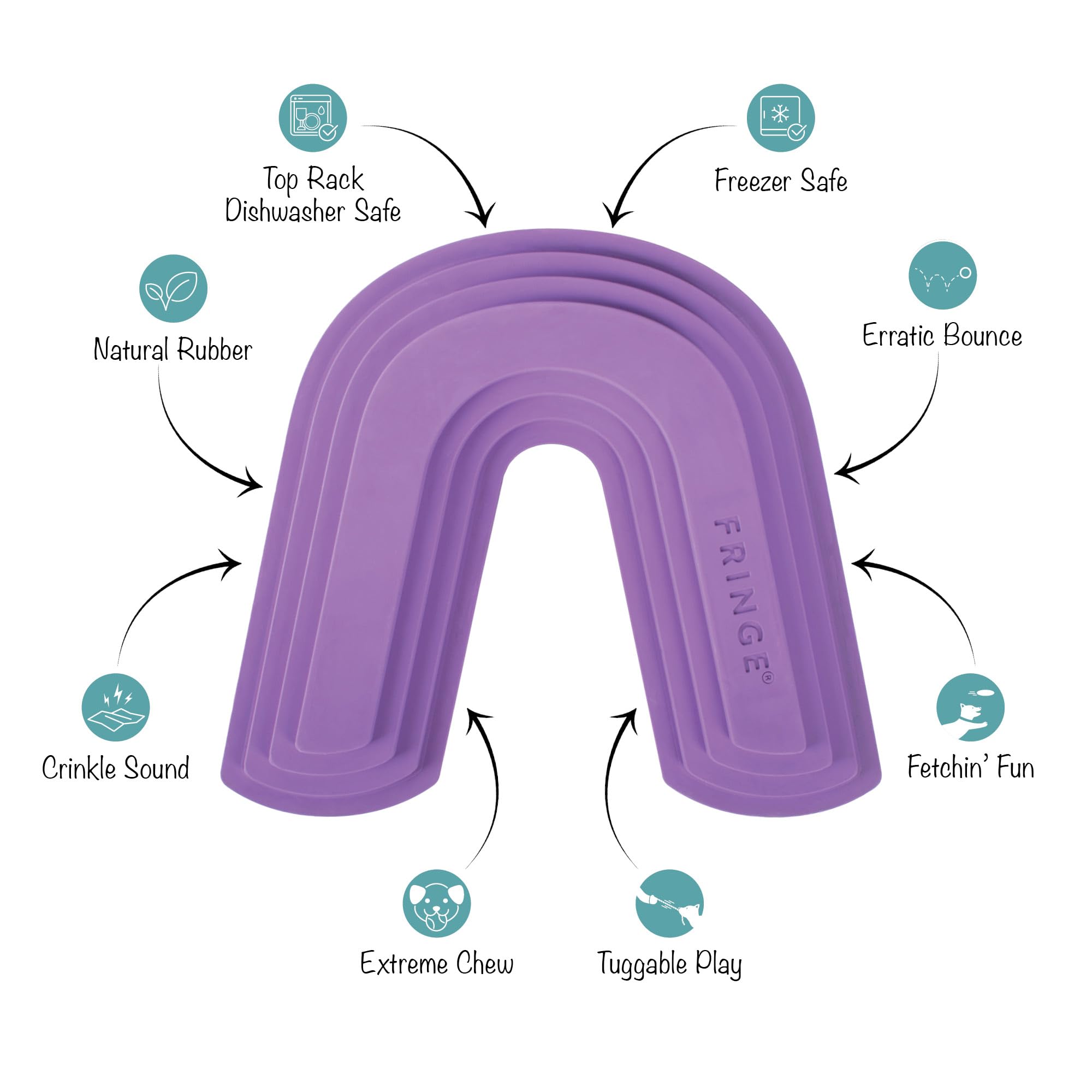 Ready to join the Dura Club? PetShop by Fringe Studio's "Color Me Happy" purple rubber dog toy is for pups that love to chew, tug, and play lots of fetch. Made with natural extreme-chew rubber, an erratic bounce, and a crinkle sound, this toy was created for long-lasting interactive play. Simply toss it for some fetchin' fun or hold on tight to one end while your pup tugs the other end. Great for all-sized dogs and strong chewers.