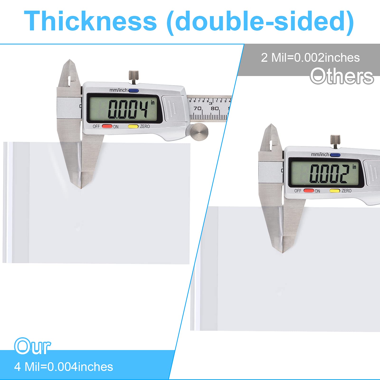 THICKNESS CLEAR PLASTIC BAGS: Our clear bags are made of thickened material, 1.4 mil (single side) thickness. Thick and strong, with excellent steam blocking performance, ensuring that your food and snacks stay fresh and extend your shelf life. (Please do not use them to store pointed items, or the bag will be damaged. )