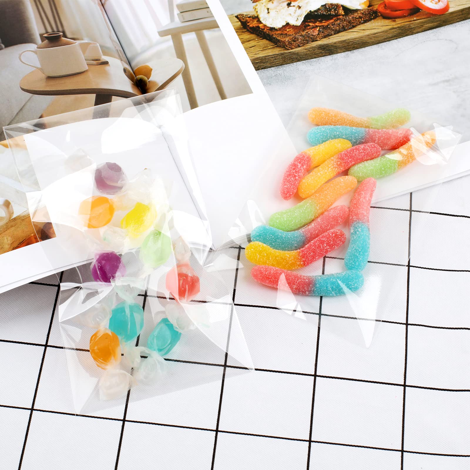 ENOUGH QUANTITY: Clear plastic bags 3x5’’ totaling 400pieces. They can store food or small items like chocolate, cookies, candy, small cakes, or other small gifts, as well as jewelry, candles, soap and other crafts. Large quantity, enough for your daily usage, and satisfy your party demands.