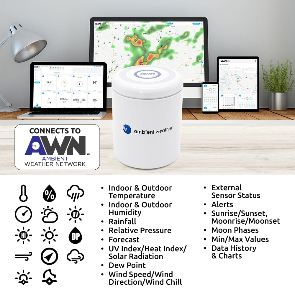 JOIN THE COMMUNITY: Connect to the Ambient Weather Network to customize your dashboard tiles, share hyperlocal weather conditions via social feeds and create your own forecasts (coming soon).
