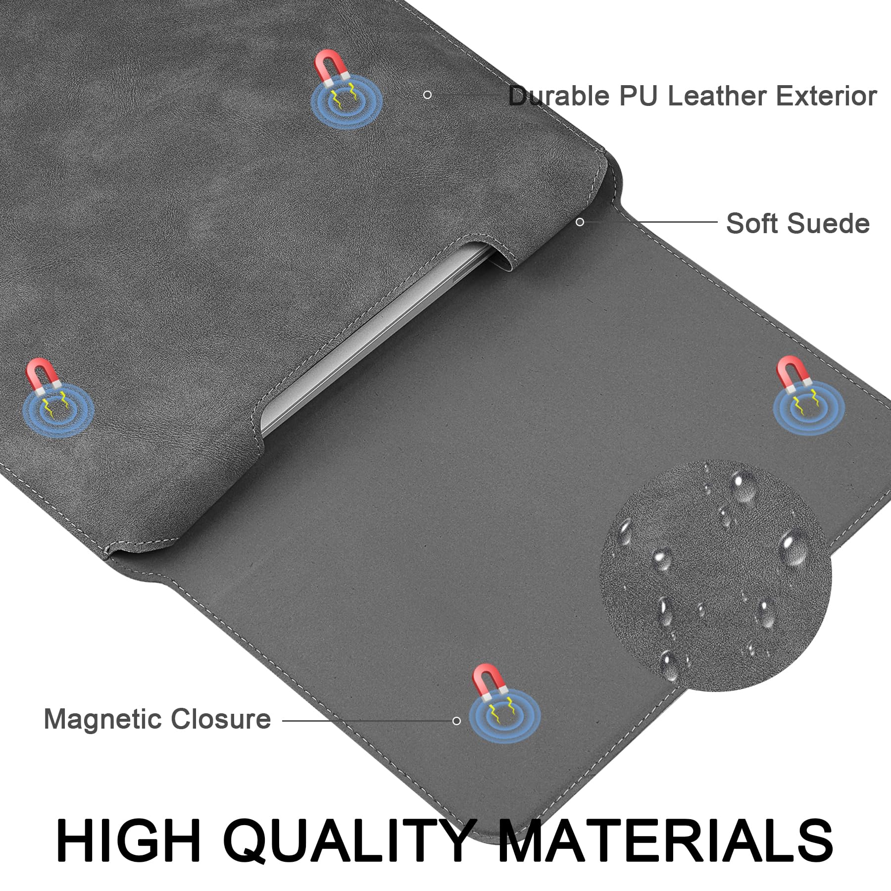 It's made of high-quality waterproof pu leather and soft lining, prevent your laptop from scratches and daily damage. Protect your device from shocks and dust. Soft touch feeling and smooth surface make it easy to clean.
