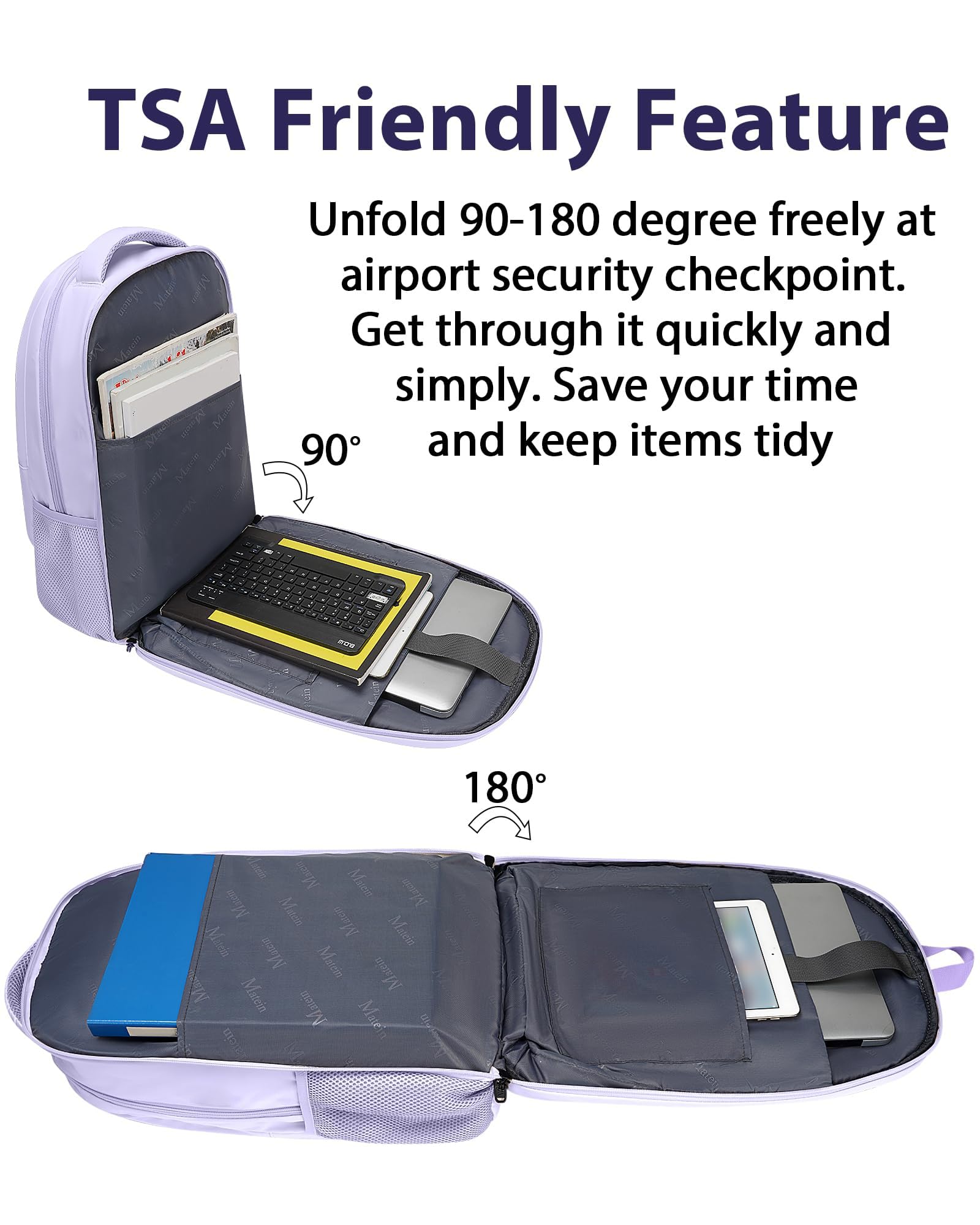 TSA Approved Backpack: Laptop compartments' tsa function is designed for airplane flight travel. Large laptop travel backpack can unfold 90 to 180 degrees, making the laptop book bag get through airport security checkpoint more easily and quickly. This 17 inch laptop backpack is large enough for daily office work, weekend getaway, overnight trip, college school, business travel