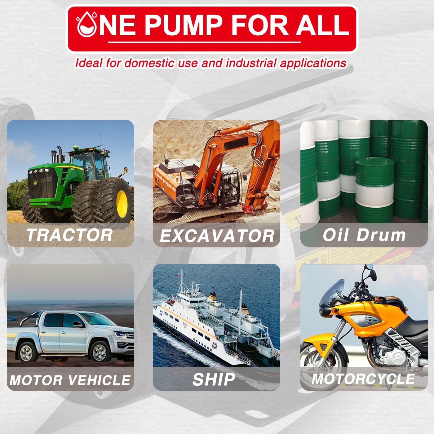 【HIGH EFFICIENCY】--1/4 HP Self-Priming Gasoline transfer pump moves up to 10 gallons per min; Equipped with solid Copper Motor Windings has max suction length of 6.6 ft, lifting up to 33 ft for quiet and quick-on-site oil transfers.