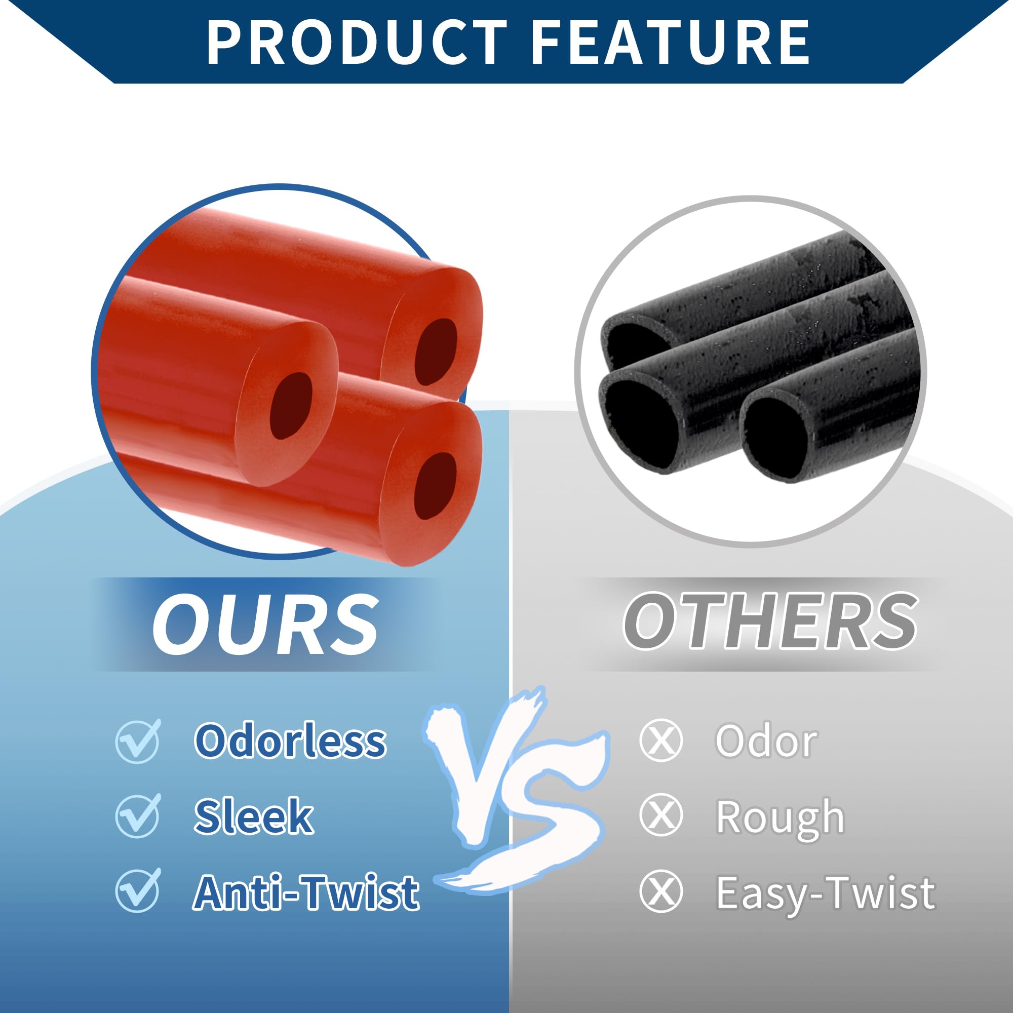 Made of:The silicone vacuum hose, made of high temp reinforced silicone, is a solid silicone tubing, which has no irritating odor and has high heat resistance with no collapse. The silicone tube is not easy to twist and deform.