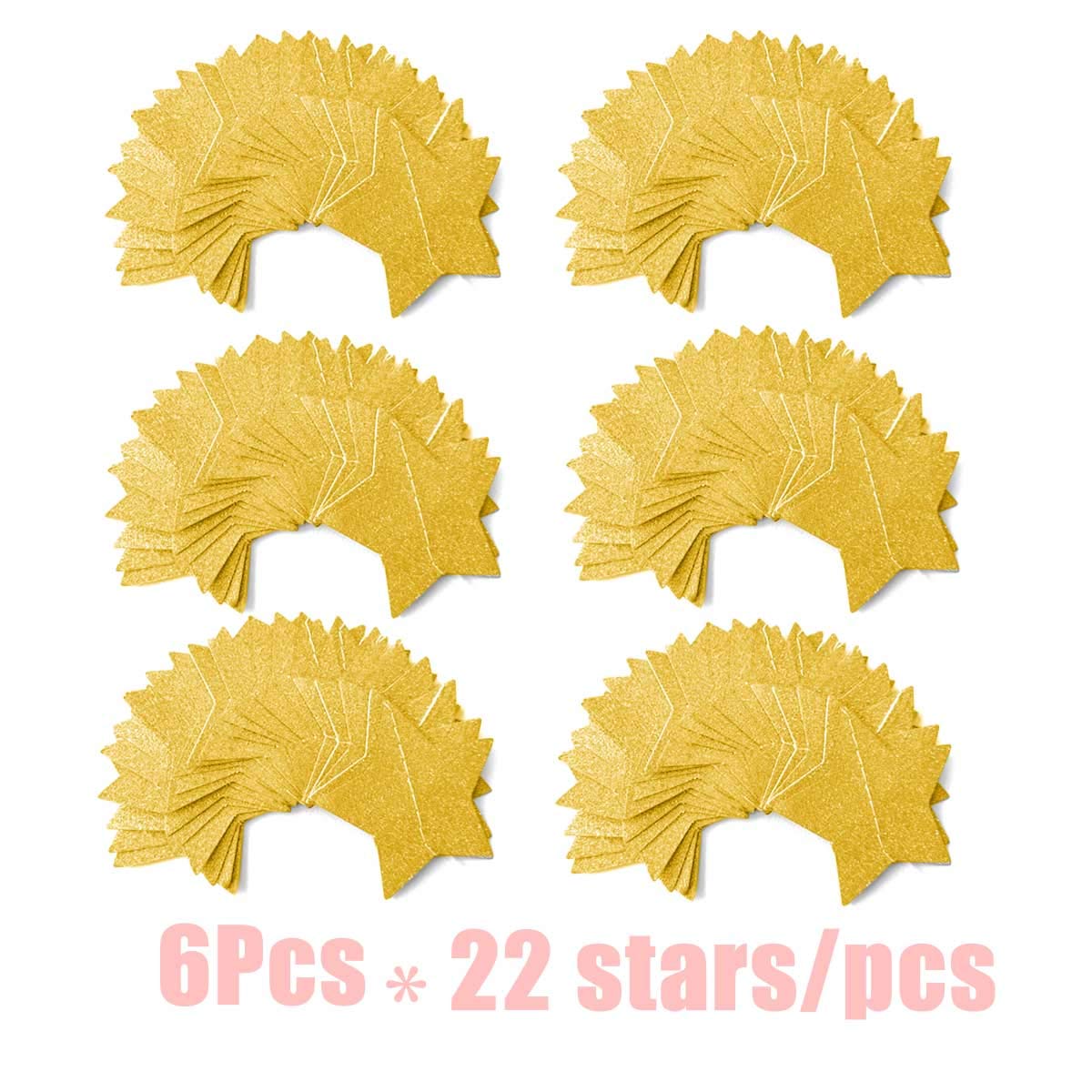 【Double-sided design】Our gold star paper garlands have been upgraded, they are double-sided, no matter which side is glitter golden. So they are not limited to hanging on walls, it's also a good choice for you to hang them on the windows or the branches. You don't have to worry about there will be no glittering when they shake