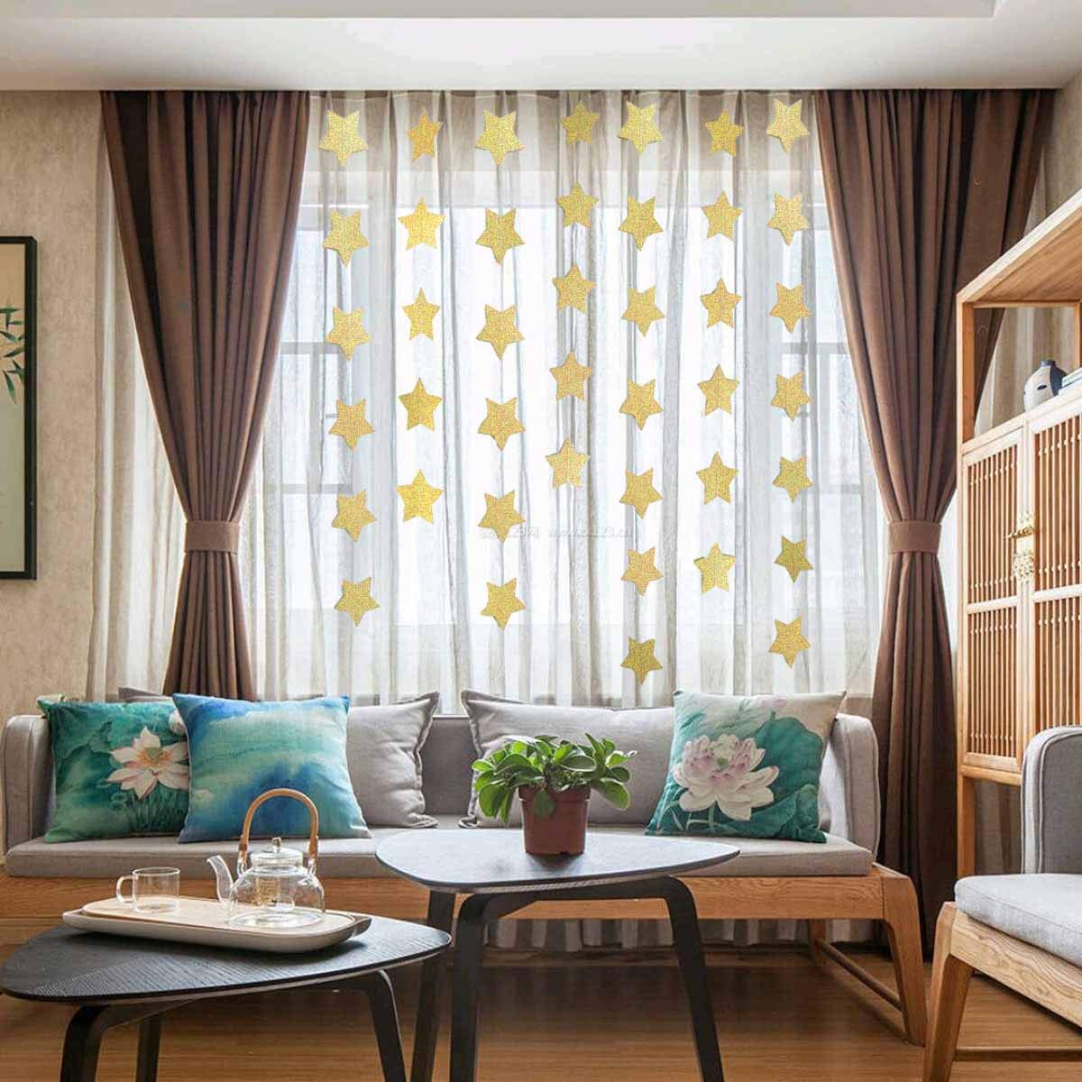 【Convenient to use】Our gold star paper garlands have been assembled. You don't need to spend extra time to connect in series, so it's very convenient to use. Star paper garlands are easy to swag and please unroll or unwrap garlands gently to avoid tangling due to delicate nature of thread