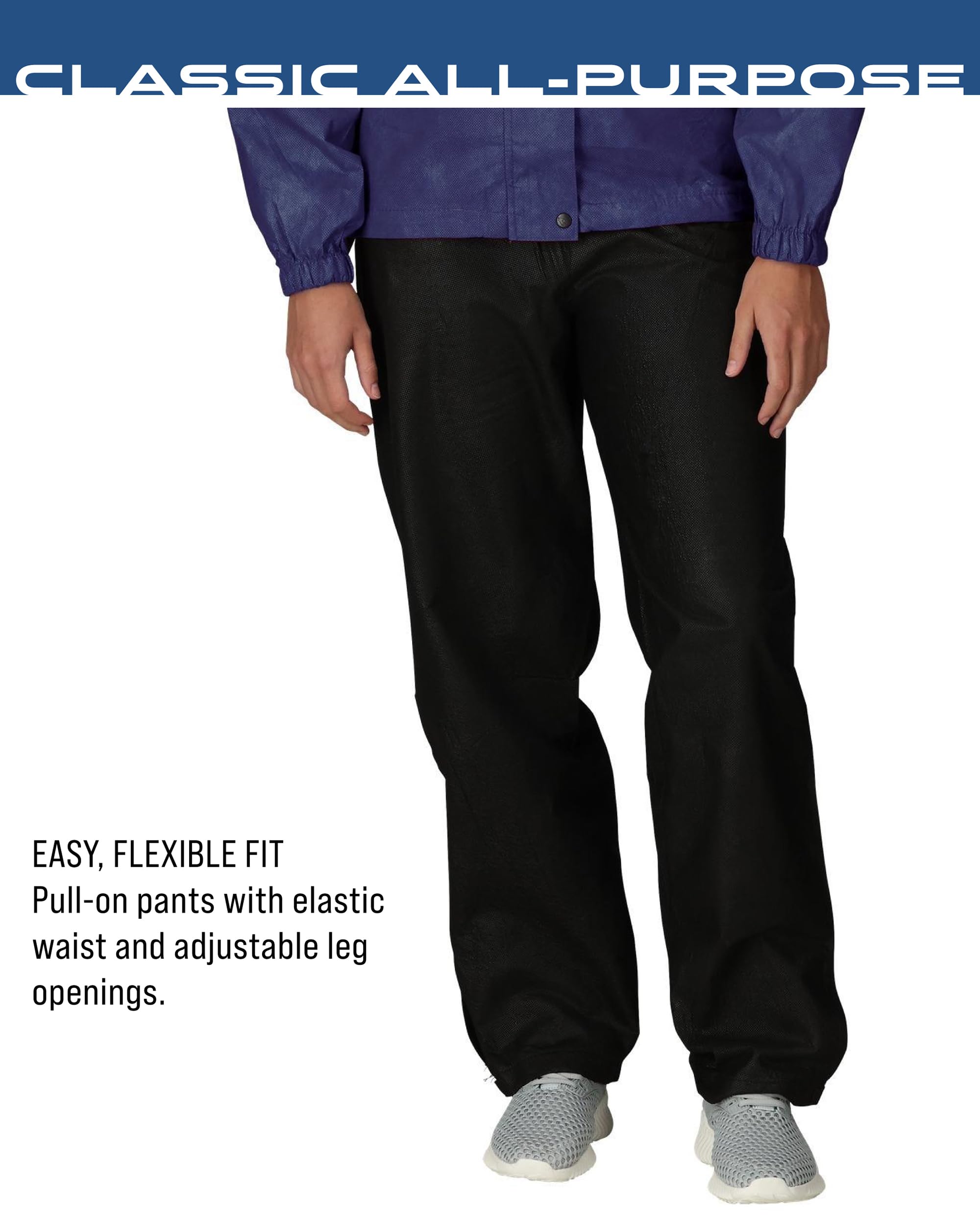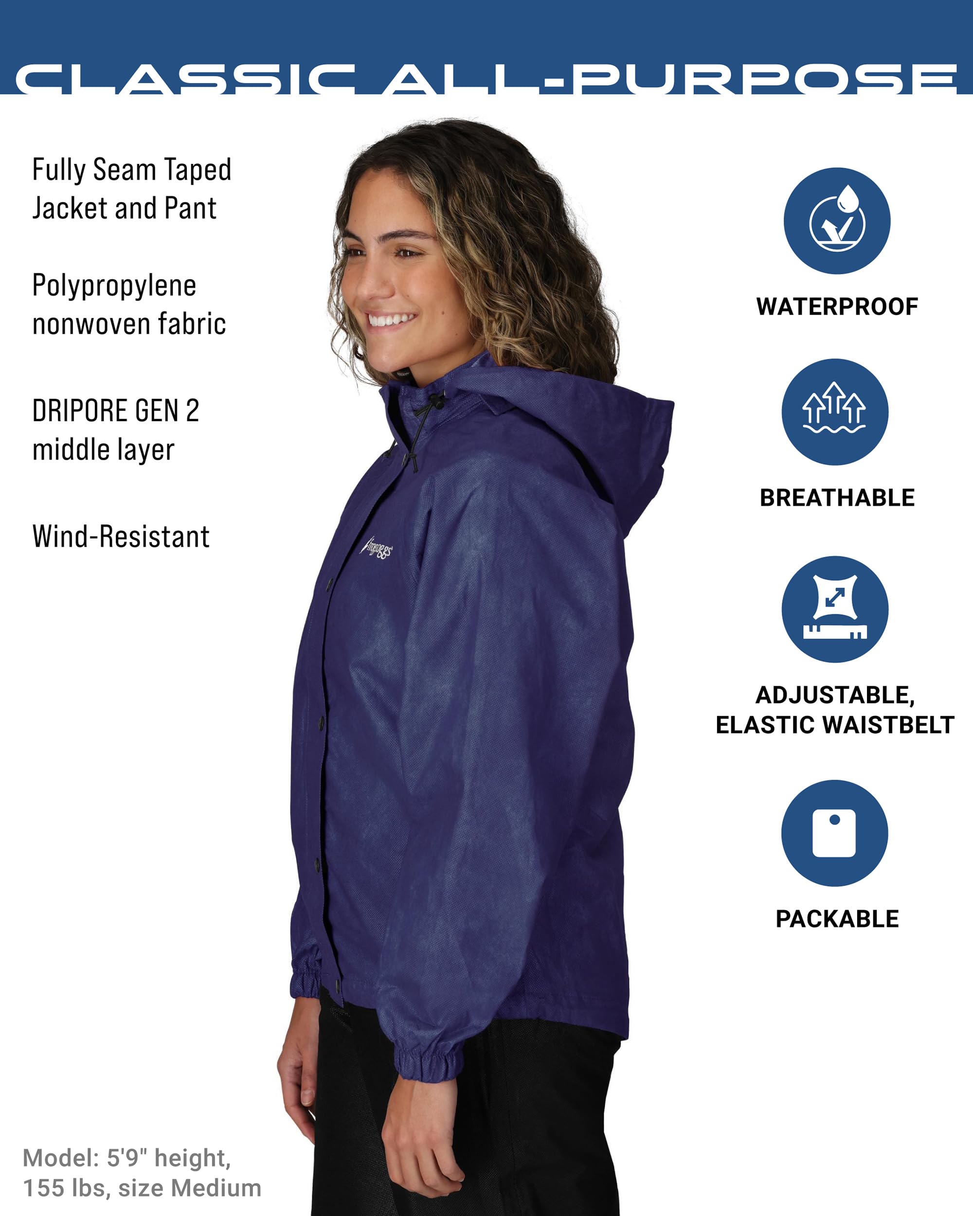 ACTION READY – The perfect rain suit for hiking, biking, ATV, sports spectating, or any outdoor activity where waterproof breathability is a must. Unique Polypropylene nonwoven fabric provides a lightweight, truly waterproof jacket at an incredible value