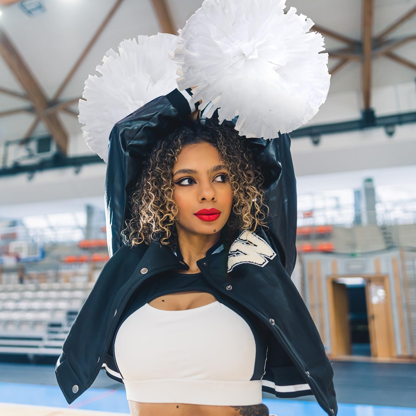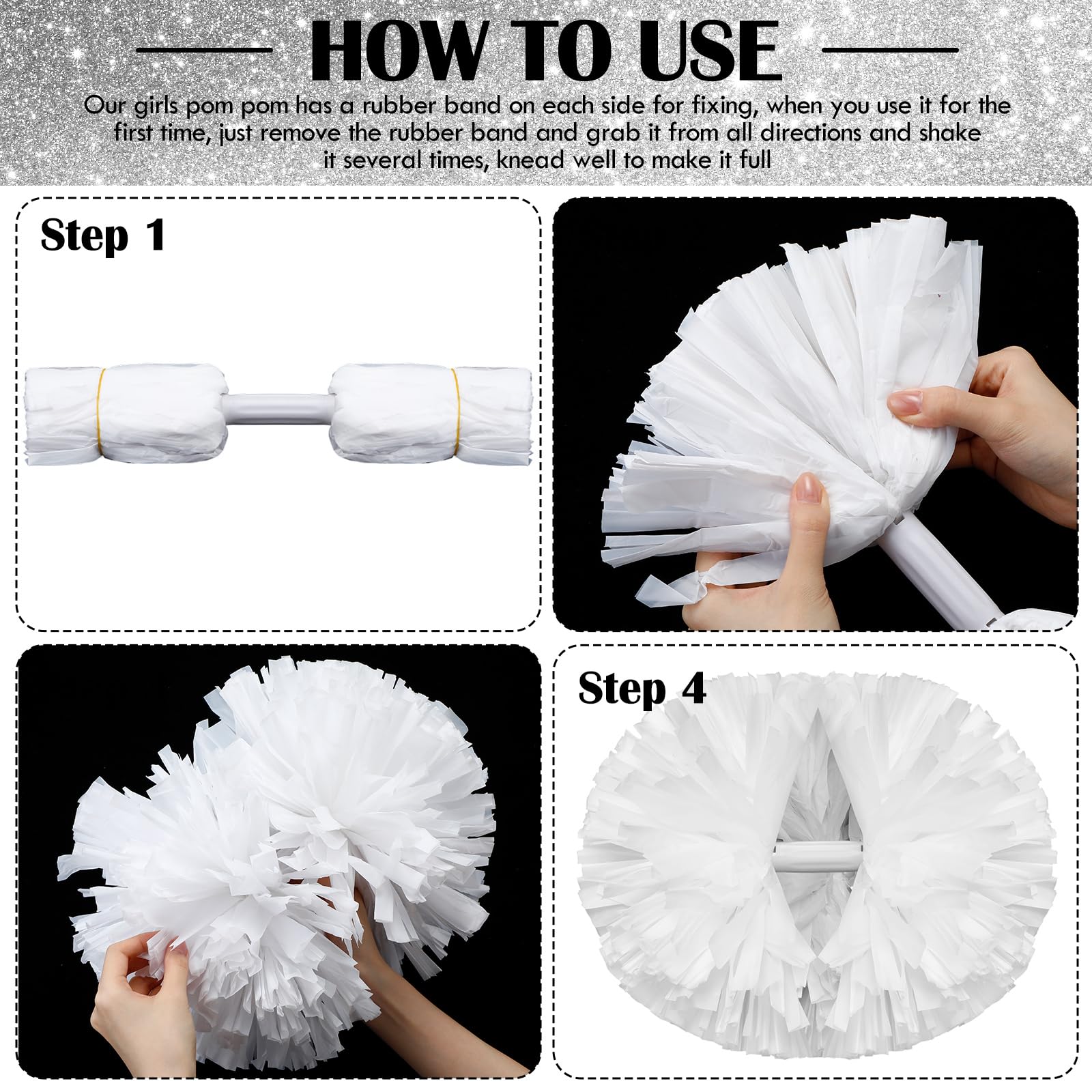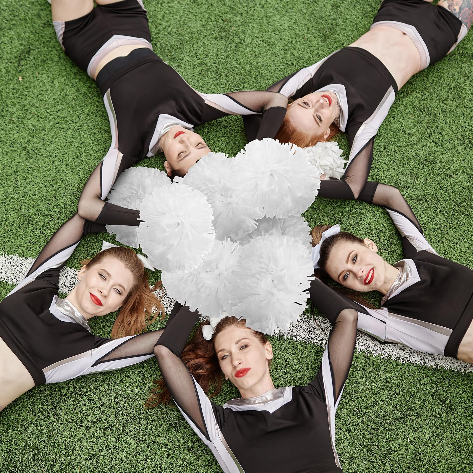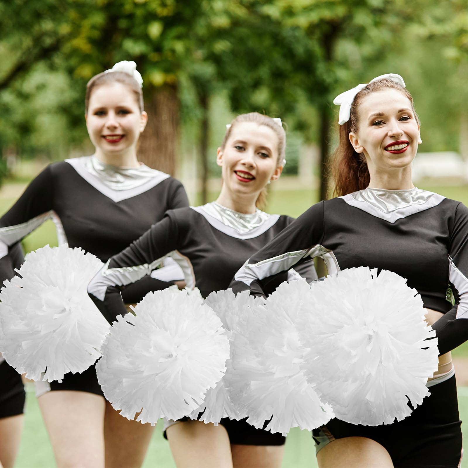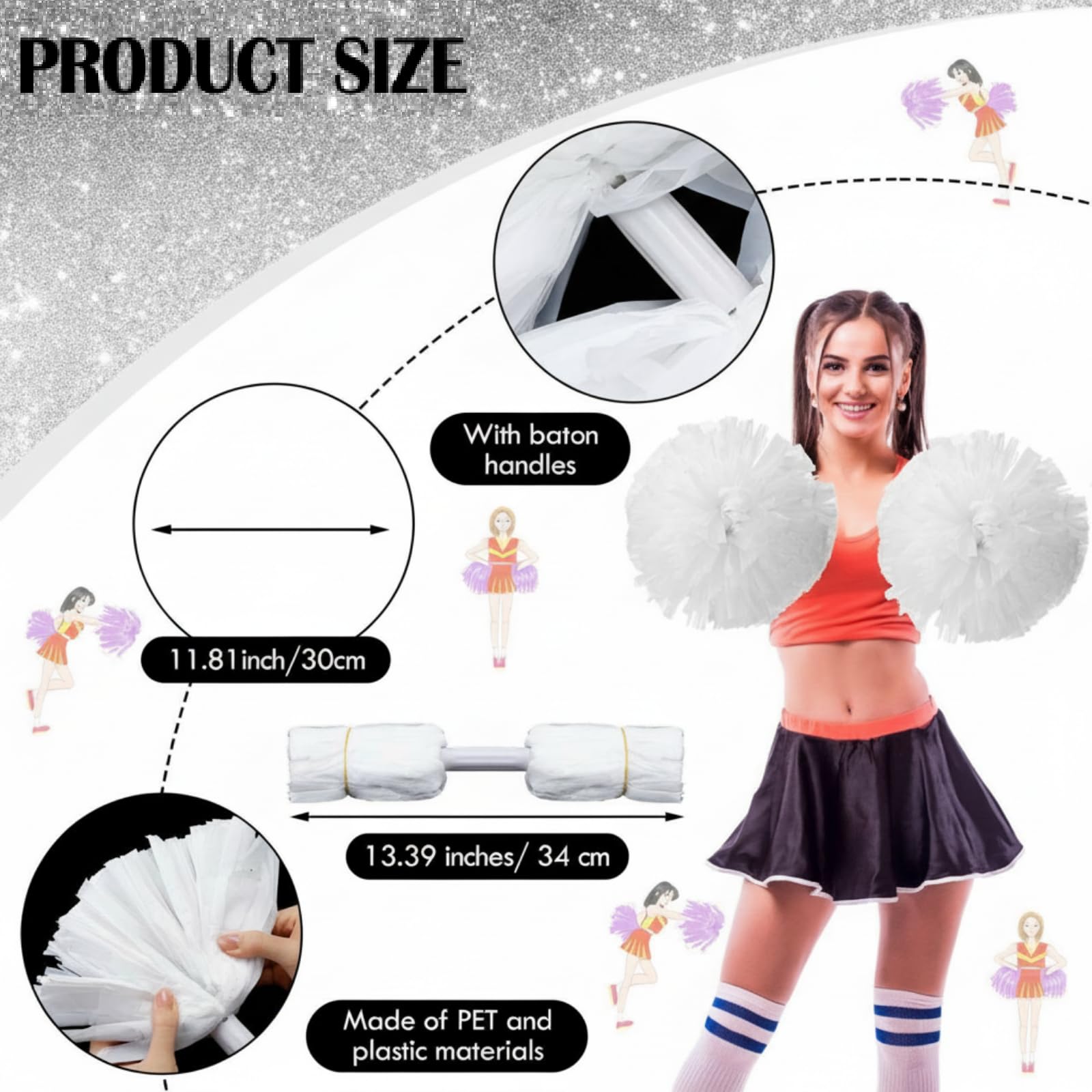 Sufficient Quantity: you will get 24 pieces (12 pairs) of cheerleading white pom poms with baton handles; Sufficient quantity can meet your daily practice requirements; At the same time, you can also share them with your cheerleading team members