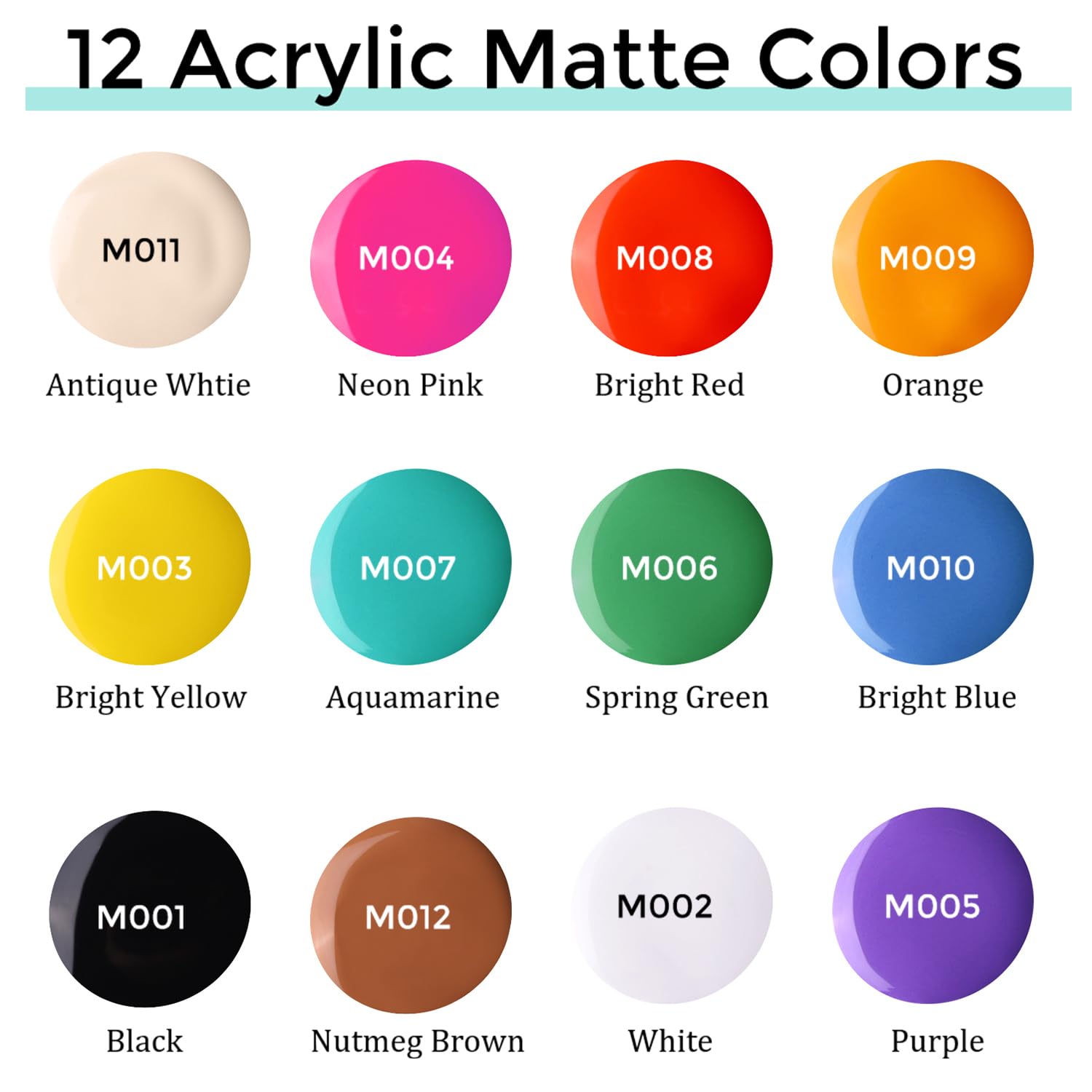 ❥[ High-quality Formula]:After our tests on thickness, color luster, coverage,adhesion and quick-drying,finally we develop this kit. This matte acrylic paint set is the best performance in this market. non-toxic and water-based formula great for crafting.Try it and you will fall in love with MUBYOK.