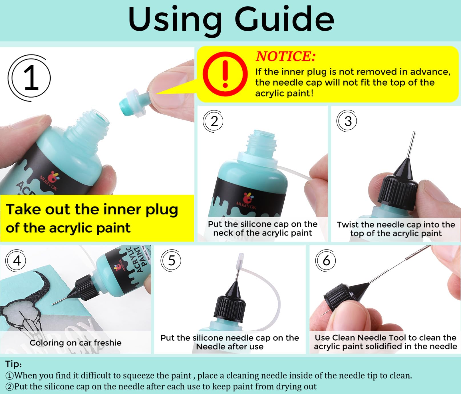 ❥[Multiple Use] Suitable for most surfaces including canvas, wood, air-dried clay, plaster, cardboard, paper and some plastics, You can apply color quickly with using our needle bottle and do not need to buy separate brushes. Great gift for creative adults, artists, beginners.