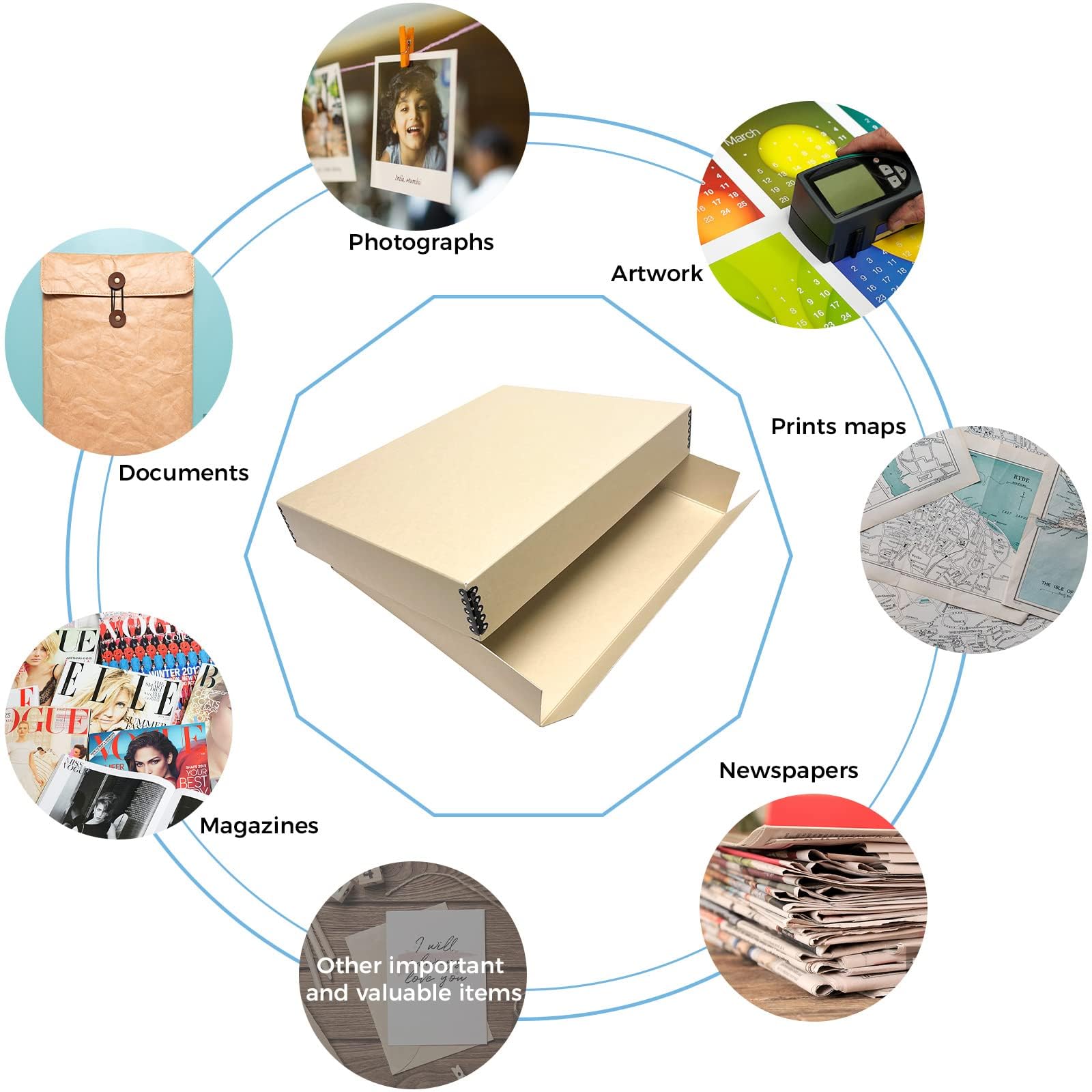 IDEAL SOLUTION: Great use for documents, files, prints, photos, art. This storage box will keep your possessions in great care and quality. Increases the longevity and lifespan of your items. Including, clothes, vintage products such as baseball cards, holiday and birthday cards, notes, and more