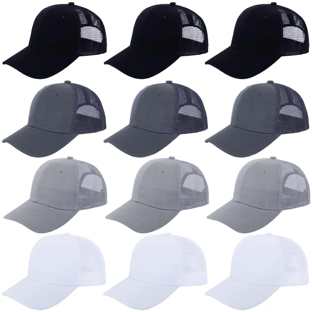 [Durable Custom Multi-Color] : These 12-pack blank trucker hats with structured front panels are durable and great for embroidery, screen printing, and heat transfer. The breathable mesh backs enhance comfort and are perfect for unique designs.