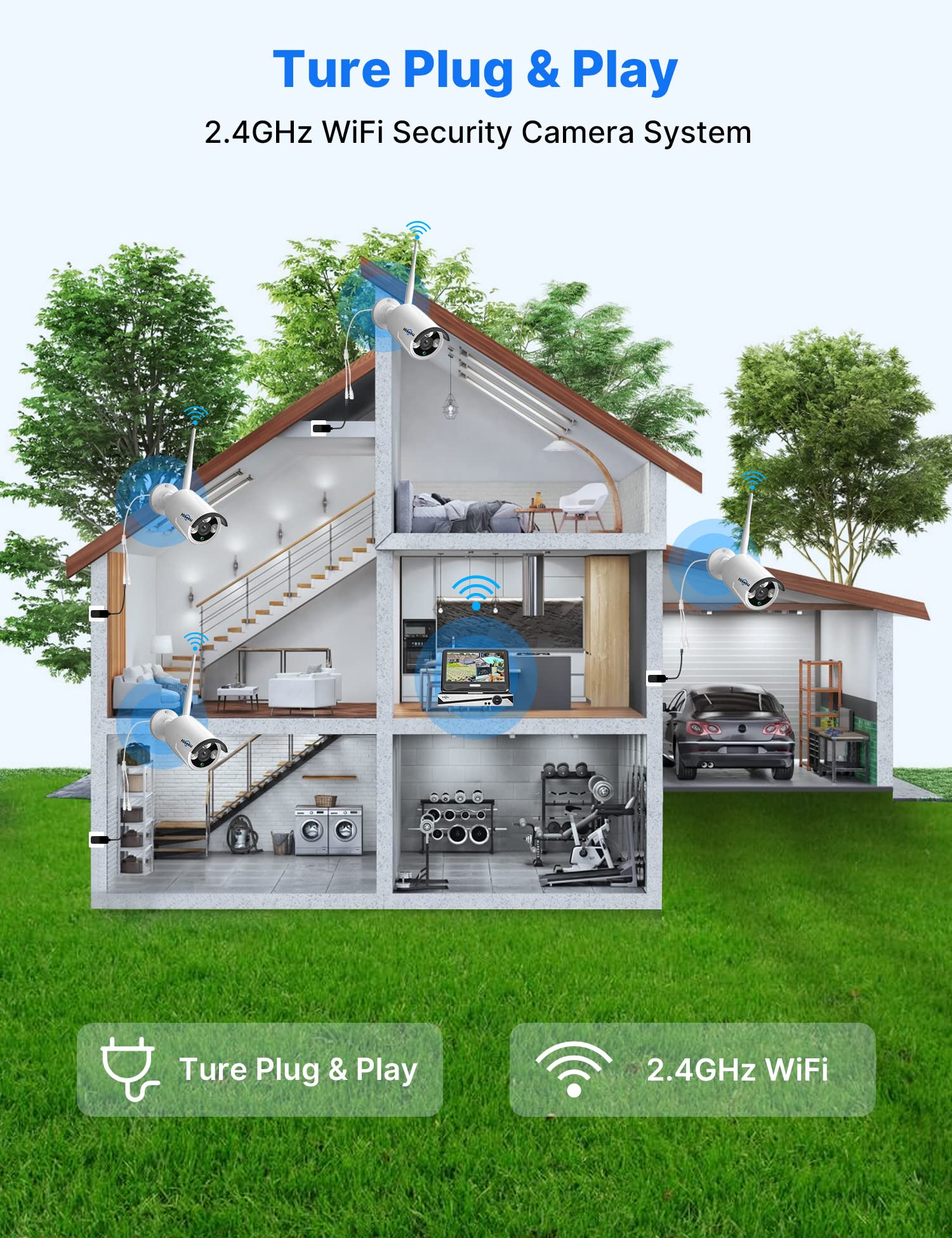 【All-in-One, Need Plug Power Supply】Wireless video security system wireless CCTV camera system features a 10" full HD 4K monitor (Not Touch Screen). It is easy to setup and DIY installation,supports 4K cameras. True plug and play. The wireless cameras and NVR monitor are auto-paired during the factory setting. You just plug all the power supply and connect TV monitor to NVR with a VGA/HDMI Cable. (NOTE: They all need to plug in the power adapter)