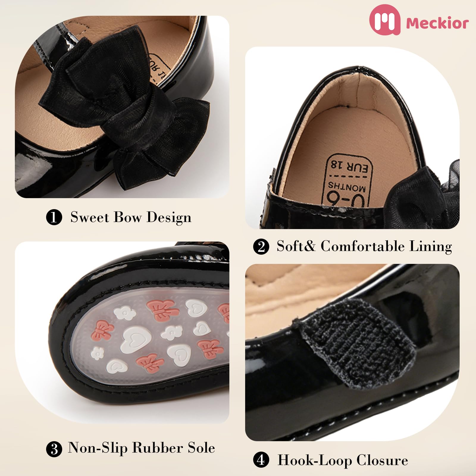 🎀【SAFE&COMFORTABLE】These Baby Girl Mary Jane Shoes Made of High Quality PU Leather.Pass Multiple Safety Tests without Any Stimulation to the Skin.Wide Round Toe Design Relax Your Baby's Feet.The Comfortable and Soft Cotton Lining Makes Your Baby Feel Natural Walking.