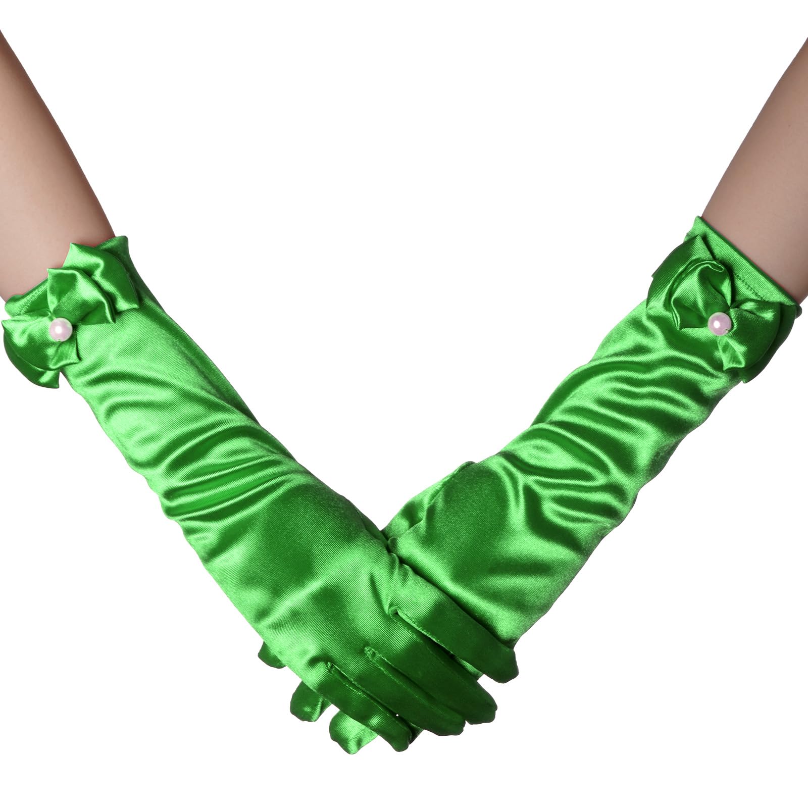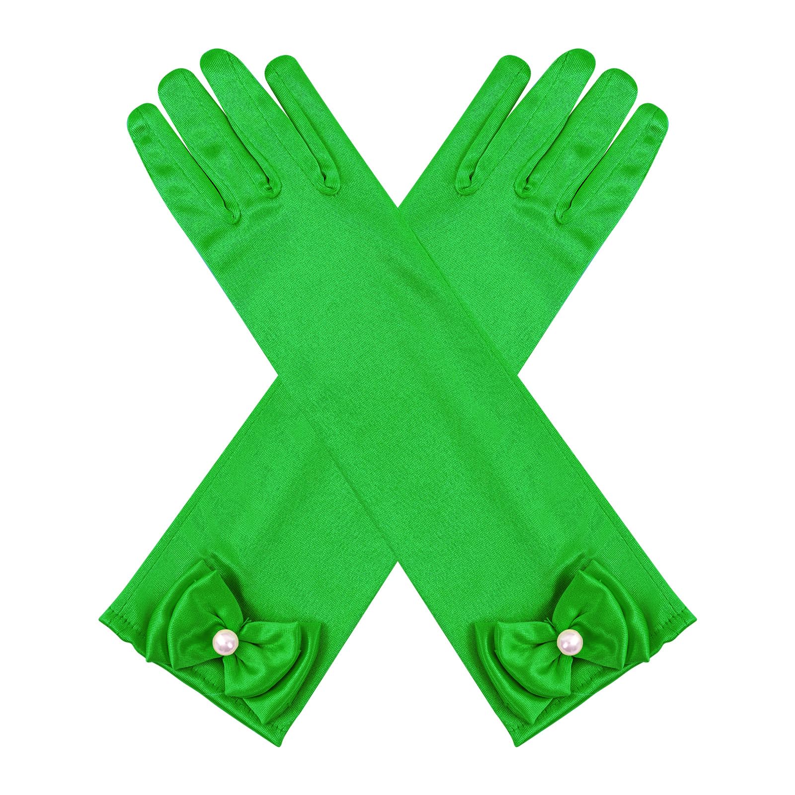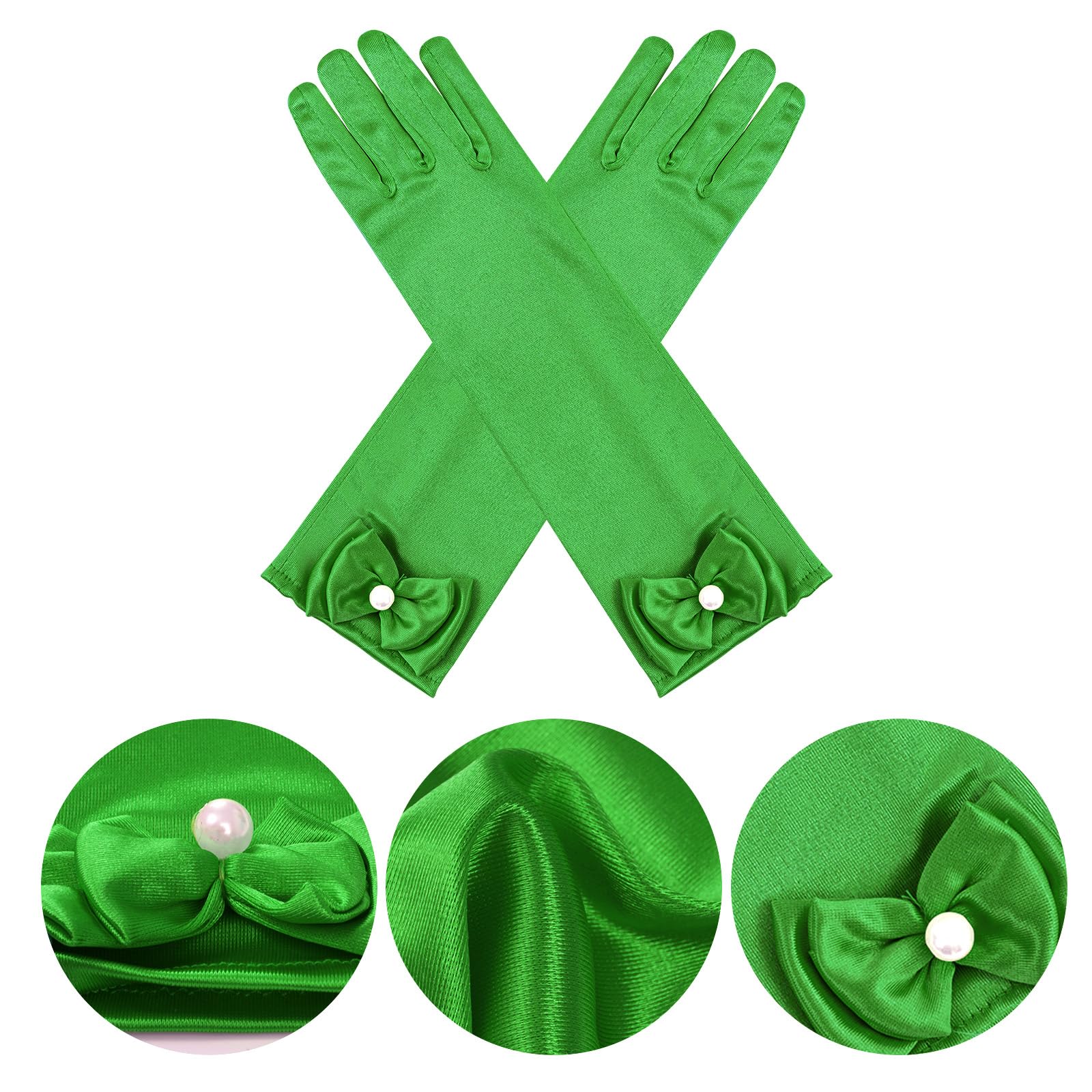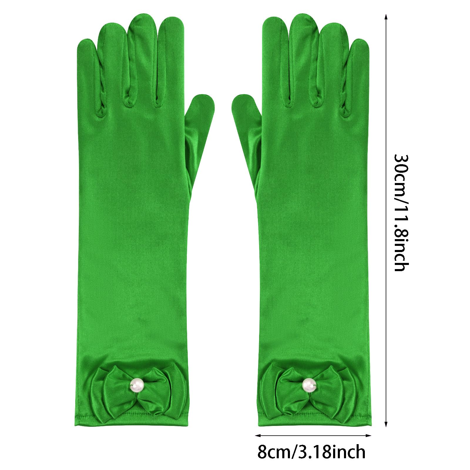 Description Features: Stretchy bow-knot girls' gloves fit children age 4 years up to 8 years old. The quality fabric is stretchable to fit a variety of sizes Easy to clean and maintain Lovely and classic gloves is a great girls accessories Suitable for little girls in Parties, Wedding, Formals Events, Performance or Costumes Package Included: 1 pair of girls gloves
