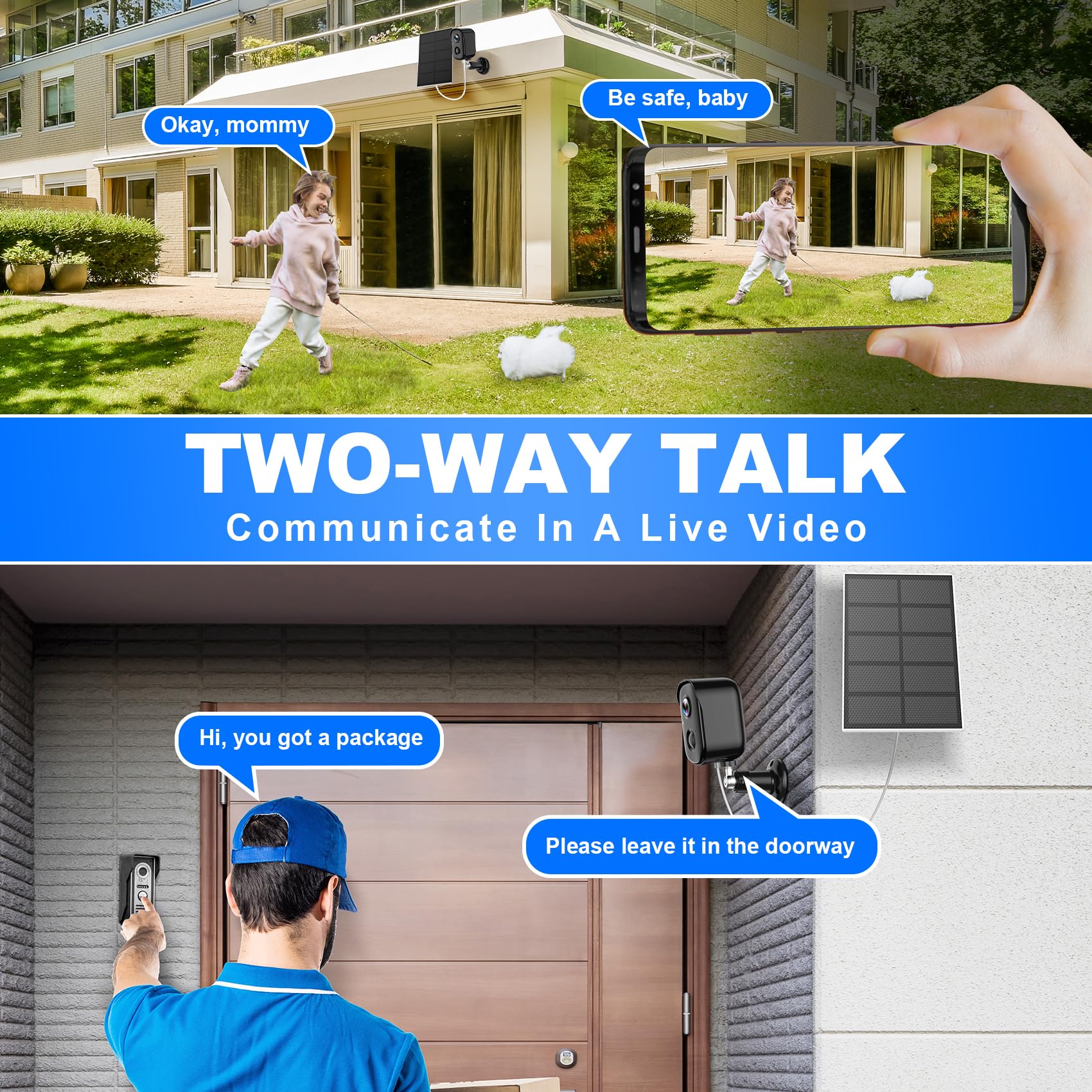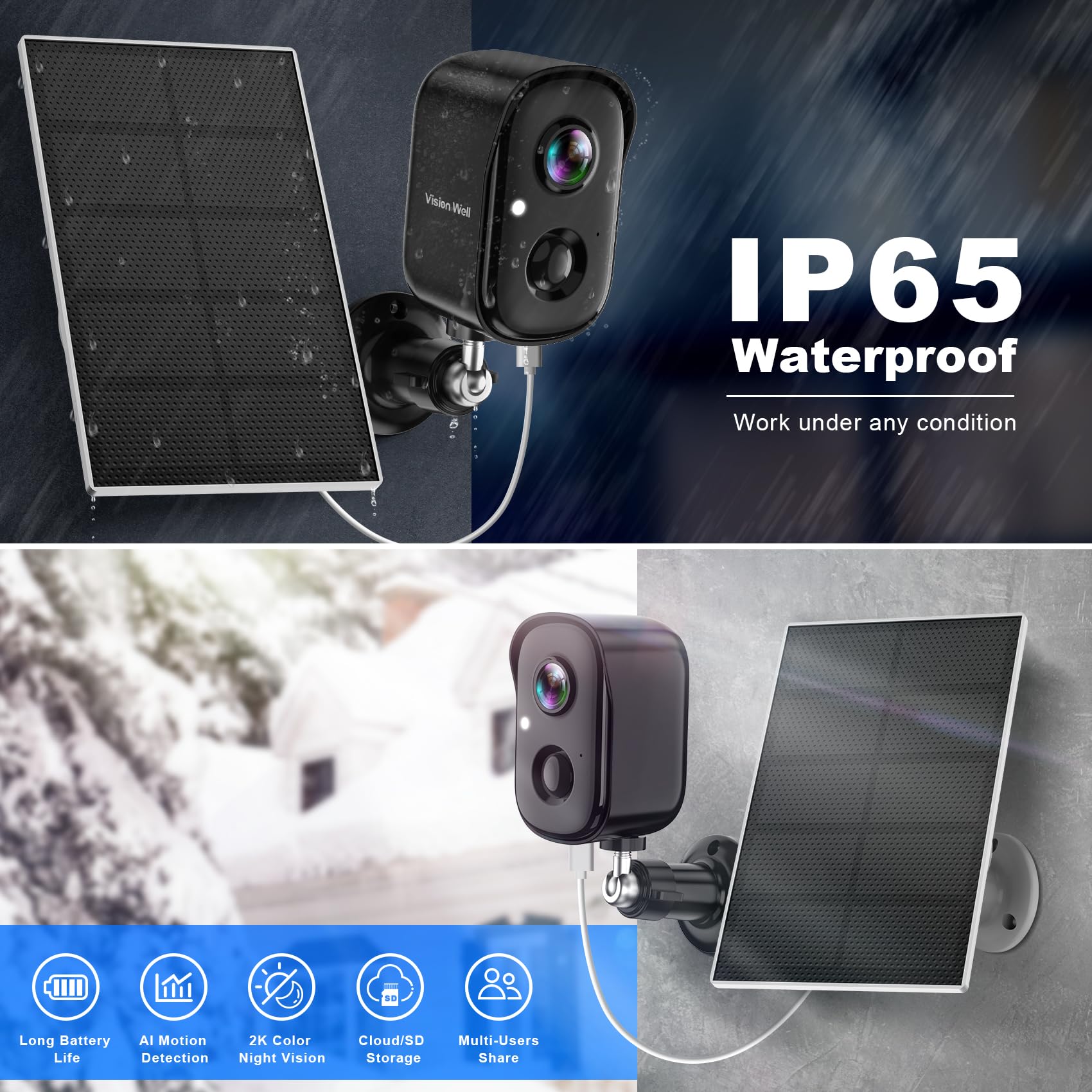 WIRE-FREE, RECHARGEABLE & NON-STOP SOLAR POWERED OUTDOOR CAMERA: This wireless rechargeable outdoor/indoor camera can provide 1 to 5 months of worry-free use on one charge. In particular, this security camera supports sustainable solar power, so you don't need to recharge again and again. With IP65 waterproof, the security cameras wireless outdoor can work in any weather, and are allowed to be installed anywhere with the provided bracket and screw.