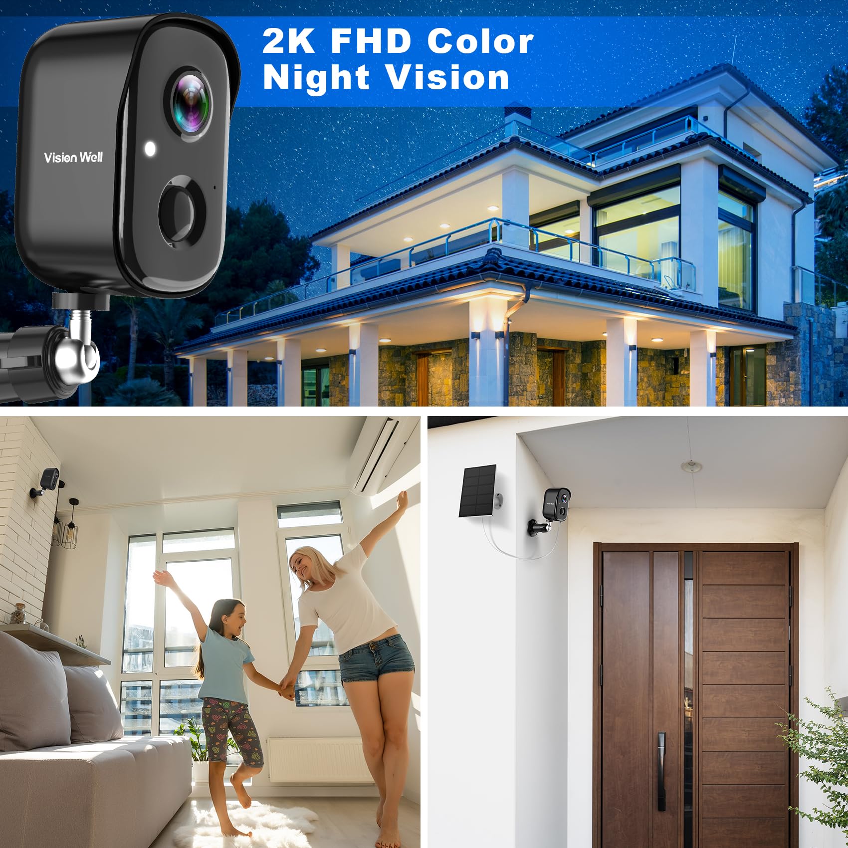 2K FHD LIVE VIDEO, PICTURE, COLOR NIGHT VISION: The security cameras wireless outdoor provide a degree wide angle, 2K quality video and image. Regarding night vision, it has two modes, full color night vision and infrared night vision with a 33ft visible range. Whether it is night or day, it will provide a clear wide video of any area you wish to monitor. With the included app, the system’s live or recorded video can be accessed anywhere at any time. (Not support 5GHz WiFi)