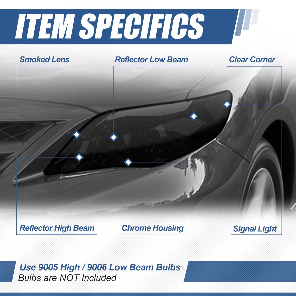 Product Specific - Bulb Type: Halogen | Beam Type: Reflector | Bulb Model: 9005 High / 9006 Low Beam (Not Included) | Signal Light: 3457A | Housing Color: Chrome | Lens Color: Smoked | OEM Part Number: #8115002670# #8111002670# #8115002680# #8111002680# | Parkslink Number: TO2502182 TO2503182 TO2502183 TO2503183